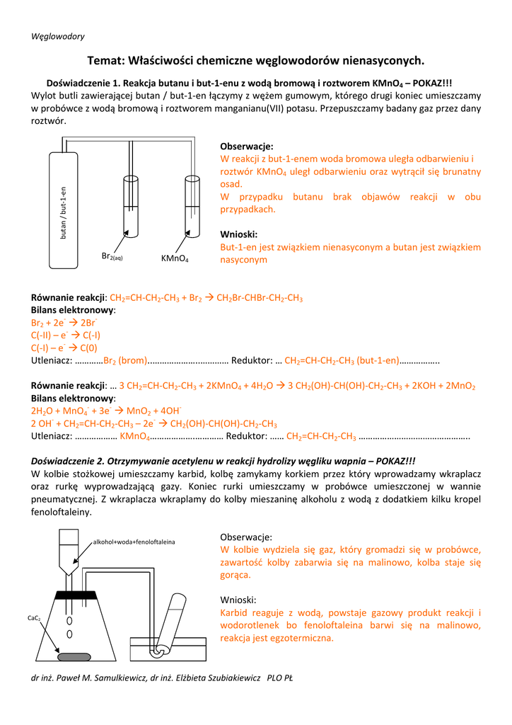 Temat: Właściwości chemiczne węglowodorów nienasyconych.