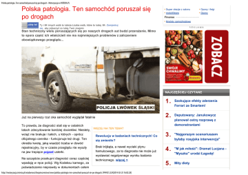 Polska patologia. Ten samochód poruszał się po drogach - Motoryzacja w INTERIA.PL Polska patologia. Ten samochód poruszał się po drogach Super okazje z salonu motoAllegro Opony i felgi Opony Finanse Kredyty samochodowe Lubię to! Ty i 84 innych osób to lubicie.Liczba osób, które to lubią: 84. Zarejestruj Lubię to! się, aby zobaczyć co lubią Twoi znajomi. Stan techniczny wielu poruszających się po naszych drogach aut budzi przerażenie. Mimo to spora część ich właścicieli nie ma najmniejszych problemów z zaliczeniem obowiązkowego przeglądu... NAJCZĘŚCIEJ CZYTANE Już na pierwszy rzut oka samochód wyglądał fatalnie To prawda, że diagności stali się w ostatnich WIĘCEJ NA TEN TEMAT latach zdecydowanie bardziej dociekliwi. Niestety, wciąż nie brakuje i takich, u których - oprócz Rewolucja w badaniach technicznych! Co oficjalnego cennika - funkcjonuje też drugi. Ten się zmieniło? określa kwotę, jaką wsadzić trzeba w dowód Brak trójkąta, a nawet wycieki płynu rejestracyjny, by w czasie przeglądu nie wyszły hamulcowego, za to diagnosta nie może już na jaw trapiące pojazd usterki. wystawiać negatywnego wyniku badania Na szczęście przekupni diagności coraz częściej technicznego. więcej > wpadają w ręce policji. Wg Kodeksu karnego, za poświadczenie nieprawdy w dokumentach celem http://motoryzacja.interia.pl/wiadomosci/bezpieczenstwo/news/polska-patologia-ten-samochod-poruszal-sie-po-drogach,1994921,324[2014-02-25 16:02:28] 1. Szokujące efekty zderzenia Ferrari ze Smartem! 2. Deputowany: Janukowycz planował ostrą rozprawę z demonstrantami 3. "Najgorszym scenariuszem byłaby rosyjska interwencja" 4. "M jak miłość": Dramat Lucjana "Myszka" urodzi Łagodę! 5. Mity diety Polska patologia. Ten samochód poruszał się po drogach - Motoryzacja w INTERIA.PL przyjęcia korzyści majątkowej grozi im nawet do 8 lat pozbawienia wolności. Niewykluczone, że taki właśnie wyrok usłyszy skrajnie nieodpowiedzialny diagnosta z Lwówka Śląskiego (Dolnośląskie), którego zatrzymali policjanci z zespołu do walki z przestępczością gospodarczą lwóweckiej komendy. Mężczyzna trafił za kratki po tym, jak funkcjonariusze drogówki zatrzymali do rutynowej kontroli drogowej Forda Transita. WIĘCEJ NA TEN TEMAT W Polsce da się zarejestrować słonia zamiast auta Oczywiście można, tym bardziej, że żaden urzędnik z żadnego wydziału komunikacji nie wyjdzie zza biurka, żeby sprawdzić, co tak naprawdę rejestruje. więcej > Powodów, dla których policjanci postanowili bliżej przyjrzeć się dostawczemu autu, nie trzeba tłumaczyć. W nadwoziu straszyły przerdzewiałe dziury, od tłumika - co widać na załączonym zdjęciu - dawno temu odpadła rura wydechowa. Funkcjonariusze - nie bez podstaw - uznali, że taki pojazd stwarzać może realne zagrożenie dla ruchu i środowiska. Ich zdziwienie wzbudził jednak fakt, że - wg pieczątki widniejącej w dowodzie rejestracyjnym - samochód zaliczył tego samego dnia obowiązkowy przegląd techniczny! Zadziwiający może być zupełny brak instynktu WIĘCEJ NA TEN TEMAT samozachowawczego diagnosty, który odważył się podbić przegląd pojazdowi, którego stan już Boisz się przeglądu? Są na to sposoby! na pierwszy rzut oka budzi poważne wątpliwości. Z każdym rokiem wzrasta liczba świadomych Wszystko wskazuje na to, że mężczyzna dopuścił kierowców, którzy regularnie serwisują swoje auto do ruchu "zaocznie", nie widząc nawet pojazdy. Duża grupa właścicieli aut wciąż kontrolowanego pojazdu... jednak pojawia się na przeglądzie tylko Nieuczciwy diagnosta trafił do aresztu, policjanci wówczas, gdy upływa termin ważności na potrzeby postępowania sądowego obowiązkowego badania technicznego. zabezpieczyli dokumenty i komputery stacji więcej > kontroli. http://motoryzacja.interia.pl/wiadomosci/bezpieczenstwo/news/polska-patologia-ten-samochod-poruszal-sie-po-drogach,1994921,324[2014-02-25 16:02:28] 6. Zakopane: Dziecko wypadło z wyciągu krzesełkowego 7. Polska będzie musiała wypłacić gigantyczne odszkodowania?! WARTO ZOBACZYĆ Potrafisz negocjować z drogówką? Są różne metody... Najlepsze samochody wg Euro NCAP Chińczycy już najlepsi! Najczęściej kradzione samochody Jak auta giną najczęściej? Tablica ogłoszeń Gotowe mieszkania Żoliborz Zimowe przeboje - 2 przytulne pokoje! Ostatnie mieszkania 2pokojowe. Sprawdź » Audi A6 Luksusowe auto, które zapewni Ci pełen komfort jazdy. Sprawdź » Promocja kredytów 2014 Weź kredyt hipoteczny i odbierz prezent. XBOX, kamera GoPro lub tablet. Polska patologia. Ten samochód poruszał się po drogach - Motoryzacja w INTERIA.PL Sprawdź » Reklamuj się w effectivo.pl Zablokowane tętnice? www.clinlife.pl/Zablokowane_tętnice Poszukiwani uczestnicy z chorobami ukł. krążenia do badania naukowego. Mieszkania do Remontu Kalkulator OC i AC motoryzacja.interia.pl Lubię to! Lubię to! Wszechobecna korozja Policja z Lwówka Śląskiego zapowiedziała, że bliżej przyjrzy się działalności poszczególnych stacji kontroli pojazdów. Szczelnie dokładnie będą też kontrolowane opuszczające je pojazdy. W tym miejscu warto przypomnieć, że w końcu ubiegłego roku wprowadzono ważne zmiany w sposobie przeprowadzania obowiązkowych badań technicznych. http://motoryzacja.interia.pl/wiadomosci/bezpieczenstwo/news/polska-patologia-ten-samochod-poruszal-sie-po-drogach,1994921,324[2014-02-25 16:02:28] Lubisz to. Ty i 27.079 innych osób lubicie obiekt motoryzacja.interia.pl.27.079 osób lubi obiekt motoryzacja.interia.pl. Polska patologia. Ten samochód poruszał się po drogach - Motoryzacja w INTERIA.PL Urwany tłumik Oprócz tego, że diagnosta zobowiązany jest WIĘCEJ NA TEN TEMAT odnotować przebieg kontrolowanego pojazdu, wprowadzono również klasyfikację usterek na Takiej kontroli na drodze się nie drobne, istotne i zagrażające bezpieczeństwu. spodziewasz! W praktyce oznacza to, że o uzyskani
