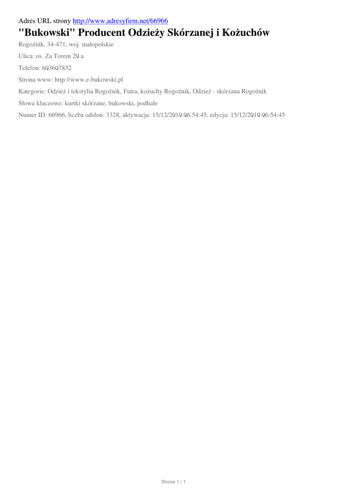 "Bukowski" Producent Odziezy Skorzanej i Kozuchow