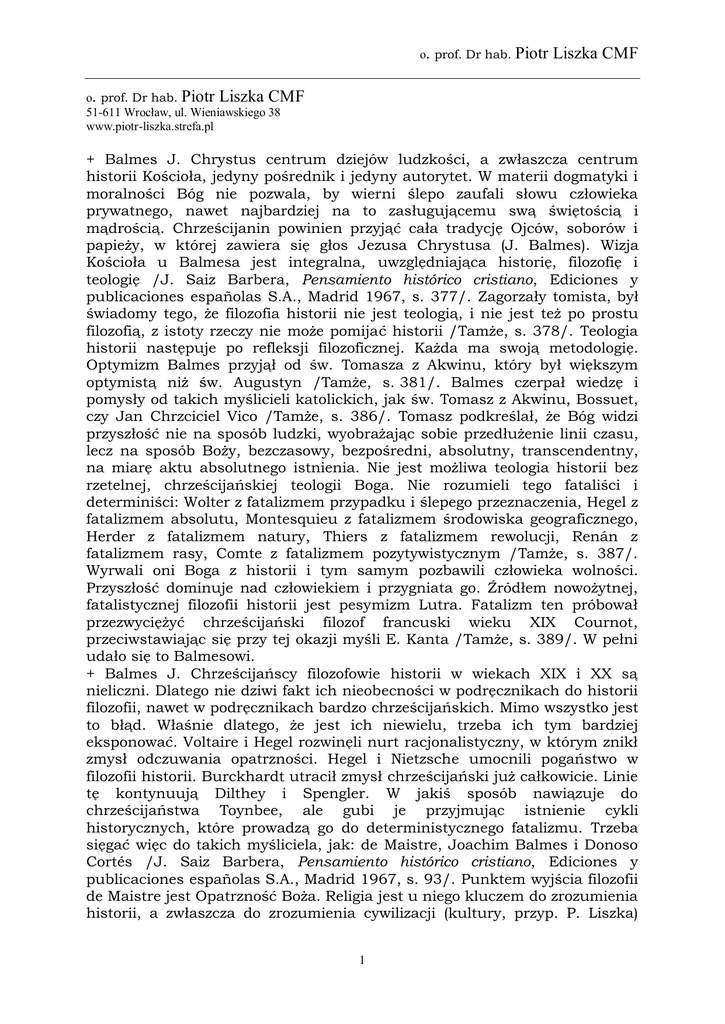 Balmes J. - prof. Dr hab. Piotr Liszka CMF