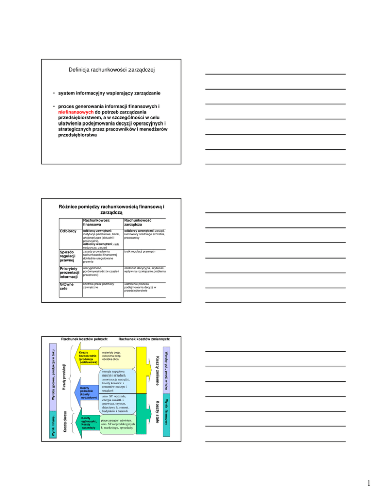 Rachunkowość Zarządcza - wykład — specjalność Rachunkowość