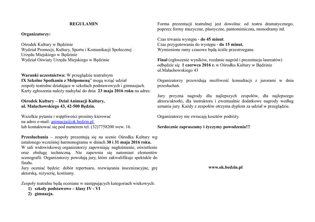 Melpomena regulamin 2016 - Ośrodek Kultury w Będzinie