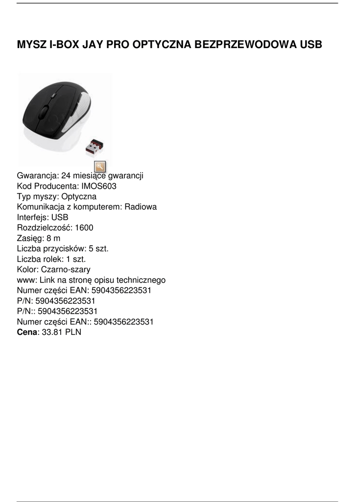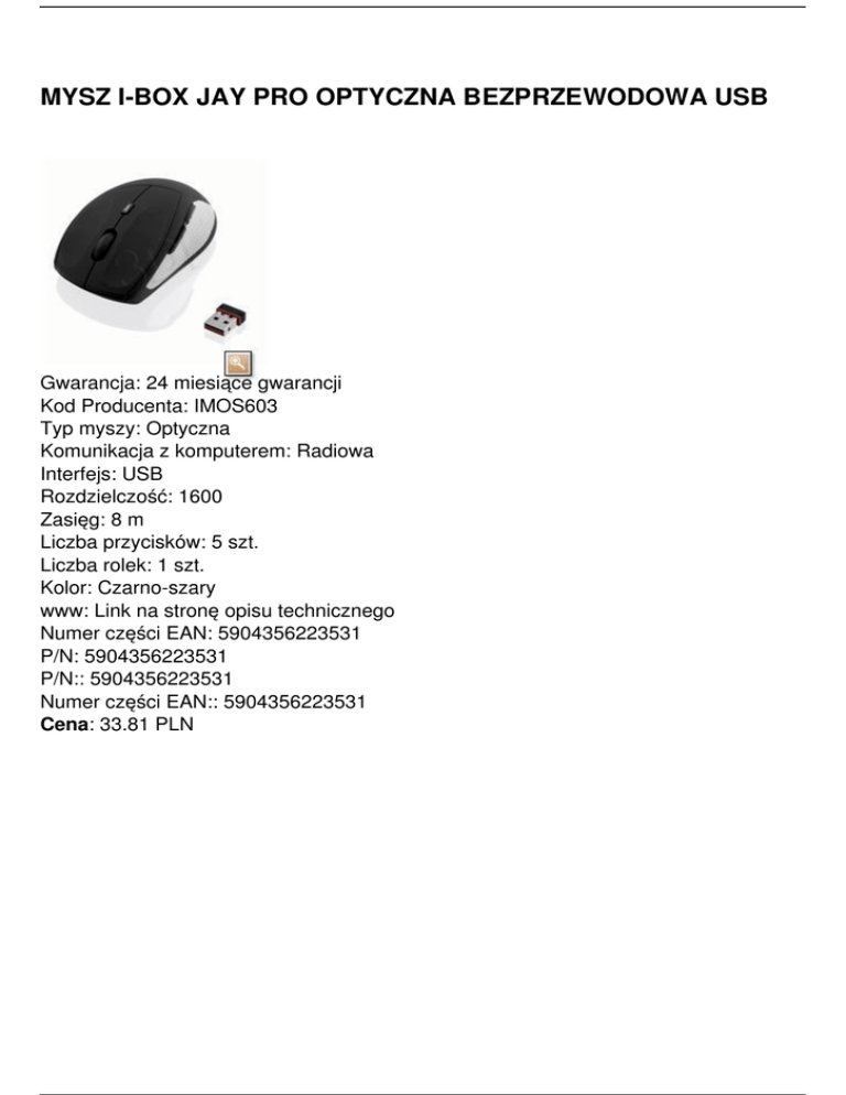 MYSZ I-BOX JAY PRO OPTYCZNA BEZPRZEWODOWA USB