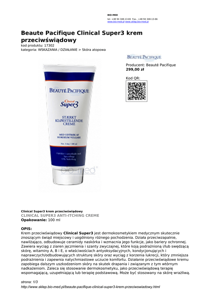 Beaute Pacifique Clinical Super3 krem przeciwświądowy - bio-med