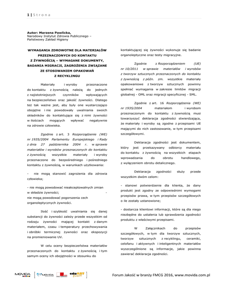 1 | Strona Forum Jakość w branży FMCG 2016, www.movida.com.pl