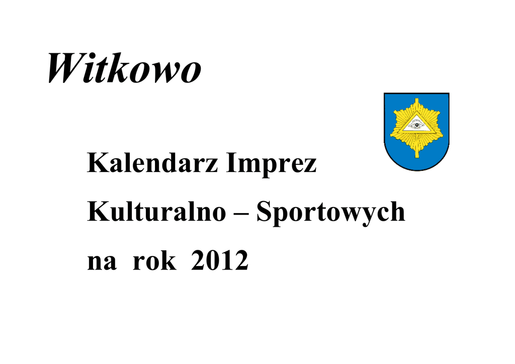 Witkowo Kalendarz Imprez Kulturalno – Sportowych na rok 2012 Kalendarz imprez na rok 2012 Nazwa 1. 2. 3. 4. 5. 6. 7. 8. 9. 10. 11. 12. 13. Akcja „FERIE – ZIMA 2012” VII Regionalny Turniej Piłki Siatkowej Drużyn Mieszanych Old-bojów Otwarty Turniej SP w UNIHOCKA Witkowska Liga Halowej Piłki Nożnej – rocznik 1996 i młodsi Gminny Turniej Tenisa Stołowego Szkół Podst. Gminny Turniej UNIHOCKA Klas IV SP Halowe Mistrzostwa Witkowa i Powiatu Modeli Balonów XIII Wielkopolskie Zawody Radnych, Wójtów, Burmistrzów, Prezydentów i Starostów Gmin, Powiatów i Sejmików Wojewódzkich w Tenisie Stołowym V Mistrzostwa Oddziału Powiatowego Związku OSP w Tenisie Stołowym XIV Gminny Plebiscyt „Na Najlepszego Sportowca Roku 2011” Mistrzostwa Gminy i Miasta w Piłce Koszykowej Szkół Podstawowych i Gimnazjów Halowy Turniej Mini Piłki Nożnej V-VI SP Otwarty Turniej Piłki Koszykowej dla Szkół Podstawowych Powiatu Gnieźnieńskiego Dziewcząt Termin Miejsce Główny Organizator IMPREZY SPORTOWE 13 - 26.02.2012 r. Hala Sportowa, Sale gimn. UKS, UGiM, OKSiR Styczeń 2011 r. Hala Sportowa UGiM, Gimnazjum Witkowo Old-boy „Kolumbowie” Styczeń 2012 r. Hala Sportowa UKS, UGiM Styczeń-Marzec 2012 Hala Sportowa UGiM, Animator ORLIKA Luty 2012 r. Luty 2012 r. Luty 2012 r. Hala Sportowa Hala Sportowa Hala Sportowa UKS, UGiM UKS, UGiM OKSiR, Sekcja Modelarska „Sokół”, UGiM Stowarzyszenie Młodych Wielkopolan, UGiM, Gimnazjum, UKS „ISKRA” 04.02.2012 r. Hala Sportowa 05.02.2012 r. Hala Sportowa Luty .2012 r. Budynek Oświatowy ZP ZOSP Gniezno,, OSP Witkowo, UGiM, Gimnazjum, UKS „ISKRA” UGiM, OKSiR, UKS,Gimnazjum Marzec 2012 r. Hala Sportowa UKS, UGiM Marzec 2012 r. Marzec 2012 r. Hala Sportowa Hala Sportowa UKS, UGiM UKS, UGiM 14. Mistrzostwa Gminy i Miasta w Piłce Siatkowej Marzec 2012 r. Szkół Podstawowych i Gimnazjów 15. Mistrzostwa Powiatu w Strzelaniu z Karabinka Marzec 2012 r. Pneumatycznego dla Szkół Gimnazjalnych 16. Otwarty Turniej Piłki Koszykowej dla Szkół Marzec 2012 r. Gimnazjalnych Powiatu Gnieźnieńskiego Chłopców 17. IX Wielkanocny Turniej Szkół Podst. Klas I-III 01.04.2012 r. 18. Drużynowe Mistrzostwa Gminy w Tenisie Kwiecień 2012 r. Stołowym Szkół Podstawowych 19. Mistrzostwa Gminy w „RZUCANCE Kwiecień 2012 r. SIATKARSKIEJ” - Klas IV SP 20. Mistrzostwa Gminy w Tenisie Stołowym Kwiecień 2012 r. 21. Wiosenne Biegi Przełajowe Szkół Podstawowych Kwiecień 2012 r. i Gimnazjów 22. Otwarty Turniej Piłki Nożnej na Sztucznej Trawie – Kwiecień 2012 r. rocznik 1999 i młodsi 23. Mistrzostwa Gminy Szkół Podstawowych w MINI Maj 2012 r. Piłce Nożnej 24. 4 - bój LA Szkół Podstawowych Maj 2012 r. 25. Witkowski Turniej w MINI Piłkę Nożną Klas IVSP Maj 2012 r. 26. III Rodzinno-Strażacki Rajd Rowerowy Maj 2012 r. 27. Turniej Tenisa Ziemnego – rozpoczęcie sezonu Maj 2012 r. 28. Gminny Turniej Piłkarski Szkół Gimnazjalnych Maj 2012 r. 29. Gminny Turniej piłki nożnej na sztucznej trawie Czerwiec klas II – IV Szkół Podstawowych 30. DZIEŃ DZIECKA 01.06.2012 r. 31. XVII Gminny Turniej Piłki Nożnej 6-cio osobowej Czerwiec 2012 r. z okazji DNI WITKOWA Hala Sportowa UKS, UGiM Sala Sportowa Mielżyn ZR LOK Witkowo, UGiM, ZSz-P Mielżyn UKS, UGiM Hala Sportowa Hala Sportowa Hala – SP Nr 3 Witkowo UGiM,OKSiR,Gimnazjum,GKPiRPA Hala Sportowa UKS, UGiM UKS, UGiM Hala Sportowa UGiM, UKS „STRZELNICA” Witkowo UKS, UGiM Witkowo, ul.Wrzesińska, Boisko - ORLIK Boisko - ORLIK UKS „BŁYSK”, UGiM Stadion Miejski Boisko – ORLIK Teren Gminy Korty tenisowe – stadion Boisko – ORLIK Witkowo,ul.Wrzesińska Boisko - ORLIK Park Miejski, ul.Wrzesińska UKS, UGiM UKS, UGiM ZSz-P Mielżyn, UKS „Sokoły”, OSP OKSiR-sekcja tenisa, UGiM UKS, UGiM, OKSiR UGiM, Animator ORLIKA Witkowo, ul.Wrzesińska, Boisko-ORLIK UKS, UGiM UGiM , OKSiR, Placówki Oświatowe UGiM, OKSiR, Sołectwa, Osiedla, Animator ORLIKA 32. Eliminacje Mistrzostw Polski Jachtów Żaglowych sterowanych radiem w Klasie F5-E Czerwiec 2012 r. OW Skorzęcin 33. Mistrzostwa Wielkopolski w Piłce Nożnej Plażowej Sierpień 2012 r. 34. XVIII Gminny Turniej Piłki Nożnej 6-cio osobowej Sierpień 2012 r. z okazji ŚWIĘTA PLONÓW 35. Witkowska Liga Piłki Nożnej na Sztucznej Trawie Wrzesień – Listopad 2012 r. 36. XII Uliczne Biegi Szkolne – Witkowo 2012 Wrzesień 2012 r. 37. Piastowski Turniej Osób Niepełnosprawnych Wrzesień 2012 r. „SPRAWNI INACZEJ” 38. VI Gminny „Jesienny” Turniej Piłki Nożnej Szkół Wrzesień 2012 r. Podstawowych 39. IX Turniej Integracyjny Klas I Gimnazjów Październik 2012 r. w Halowej Piłce Nożnej 40. IX Turniej Rekreacyjny Gimnazjów w Piłce Listopad 2012 r. Siatkowej Drużyn Mieszanych 41. Otwarty Turniej w Piłce Siatkowej Mężczyzn Listopad 2012 r. 42. X Mistrzostwa Gminy w Halowej Piłce Nożnej XI 2012 / II 2013 OW Skorzęcin Witkowo, ul.Wrzesińska, Boisko-ORLIK Witkowo, ul.Wrzesińska, Boisko-ORLIK Witkowo – stadion Hala Sportowa 43. X Mikołajkowy Turniej Przedszkoli i Oddziałów Przedszkolnych 44. XI Turniej Halowej Piłki Nożnej Trampkarzy im. Walentego Olczaka 45. Mikołajkowy Turniej Tenisa Stołowego 46. XIX Ogólnopolski Nocny Turniej Szachowy „Świąteczny” OKSiR-sekcja modelarska„SOKÓŁ” LOK Poznań, UGiM, Starostwo Powiatowe „Chrobry” Gniezno,UGiM,OKSiR UGiM, OKSiR, Sołectwa, Osiedla, Animator ORLIKA UGiM, Animator ORLIKA Witkowo, ul.Wrzesińska, Boisko-ORLIK Hala Sportowa UGiM , OKSiR, UKS Stowarzyszenie Młodych Wielkopolan, UGiM, Gimnazjum UKS, UGiM, OKSiR, Animator ORLIKA UKS, UGiM Hala Sportowa UKS, UGiM Hala – ZSP Witkowo Hala Sportowa UKS „BŁYSK”, UGiM UGiM, Sołectwa,Osiedla,Zakłady pracy, Animator ORLIKA Grudzień 2012 r. Hala Sportowa UGiM,OKSiR,Gimnazjum,GKPiRPA Grudzień 2012 r. Hala Sportowa GKS „VITCOVIA”, UGiM Grudzień 2012 r. Grudzień 2012 r. Hala – ZSP Witkowo Klub Garnizonowy UKS „BŁYSK”, UGiM 3.Skrzydło Lotn. Transport., 33 Baza Lotn.Tran,Klu