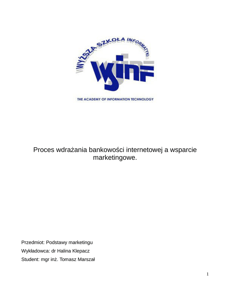 Proces wdrażania bankowości internetowej a wsparcie marketingowe.