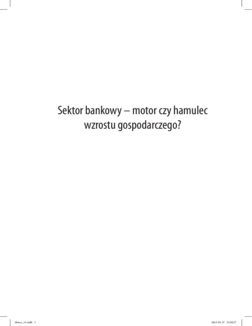Sektor bankowy – motor czy hamulec wzrostu gospodarczego? sbmcc_v1.indb 1 2013-02-27 12:38:37 Autorzy Stanisław Kasiewicz – Wstęp, Synteza, Rozdział 1, Rozdział 4, Zakończenie Lech Kurkliński – Wstęp, Synteza, Rozdział 3, Rozdział 4, Zakończenie Monika Marcinkowska – Rozdział 2 Recenzent prof. dr hab. Stanisław Flejterski sbmcc_v1.indb 2 2013-02-27 12:38:37 Stanisław Kasiewicz Lech Kurkliński Monika Marcinkowska Sektor bankowy – motor czy hamulec wzrostu gospodarczego? ALTERUM Ośrodek Badań i Analiz Systemu Finansowego Zakład WARSZAWSKIEGO INSTYTUTU BANKOWOŚCI Warszawa 2013 sbmcc_v1.indb 3 2013-02-27 12:38:37 Fundacja Warszawski Instytut Bankowości ul. Wiejska 12A, 00-490 Warszawa, tel. 22 826 99 24, 22 826 81 35, faks: 22 201 21 13 www.wib.org.pl Redaktor Elżbieta Błuszkowska © Copyright by Fundacja Warszawski Instytut Bankowości Publikacja jest chroniona przepisami prawa autorskiego. Rozpowszechnianie w jakikolwiek sposób bez zgody wydawcy jest zabronione i podlega odpowiedzialności karnej. ISBN 978-83-922099-3-5 Nakład 800 egz. Projekt okładki Piotr Dygas Zdjęcie na okładce © Alex Moe - Fotolia.com Skład i druk 1NEW – Piotr Dygas [email protected] tel. +48 501 012 012 sbmcc_v1.indb 4 2013-02-27 12:38:37 Spis treści Wstęp . . . . . . . . . . . . . . . . . . . . . . . . . . . . . . . . . . . . . . . . . . . . . . . . . . . . . . . . . . . . . . . . . 7 Synteza . . . . . . . . . . . . . . . . . . . . . . . . . . . . . . . . . . . . . . . . . . . . . . . . . . . . . . . . . . . . . . . 11 Rozdział 1 Transformacja systemu instytucjonalnego sektora bankowego . . . . . . . . . . . . . . . . . 17 1.1. Raport de Larosière’a . . . . . . . . . . . . . . . . . . . . . . . . . . . . . . . . . . . . . . . . . . . . . . . . . . . 1.2. Reguła Volckera . . . . . . . . . . . . . . . . . . . . . . . . . . . . . . . . . . . . . . . . . . . . . . . . . . . . . . . 1.3. Raport Vickersa . . . . . . . . . . . . . . . . . . . . . . . . . . . . . . . . . . . . . . . . . . . . . . . . . . . . . . . 1.4. Raport Liikanena . . . . . . . . . . . . . . . . . . . . . . . . . . . . . . . . . . . . . . . . . . . . . . . . . . . . . . 1.5. Unia bankowa . . . . . . . . . . . . . . . . . . . . . . . . . . . . . . . . . . . . . . . . . . . . . . . . . . . . . . . . . 1.6. Podsumowanie . . . . . . . . . . . . . . . . . . . . . . . . . . . . . . . . . . . . . . . . . . . . . . . . . . . . . . . . 18 22 24 29 33 39 Rozdział 2 Koncepcja i praktyka budowania relacji banków z interesariuszem publicznym . . 41 2.1. Teoretyczne podstawy budowania relacji banków z interesariuszem publicznym . . . . 2.1.1. Modelowe funkcje i cele banku jako instytucji finansowej . . . . . . . . . . . . . . . . . . . . 2.1.2. Makroekonomiczne oczekiwania instytucji publicznych wobec banków . . . . . . . . . 2.1.3. Różnorodne formy odpowiedzialności banku . . . . . . . . . . . . . . . . . . . . . . . . . . . . . . . 2.1.4. Odpowiedzialność banku wobec interesariuszy publicznych w dominujących współcześnie koncepcjach zarządzania bankiem (VBM, SVM, CSR) . . . . . . . . . . . . 2.2. Ocena wyników banku przez pryzmat oczekiwań i celów interesariusza publicznego . 2.2.1. Mierniki oceny banku działającego według koncepcji zarządzania wartością dla akcjonariuszy . . . . . . . . . . . . . . . . . . . . . . . . . . . . . . . . . . . . . . . . . . . . . . . . . . . . . 2.2.2. Mierniki oceny banku działającego według koncepcji zarządzania wartością dla interesariuszy . . . . . . . . . . . . . . . . . . . . . . . . . . . . . . . . . . . . . . . . . . . . . . . . . . . . . 2.2.3. Pryzmat wyników jako kompleksowe narzędzie wspierające kształtowanie relacji banku z interesariuszami publicznymi . . . . . . . . . . . . . . . . . . . . . . . . . . . . . . . . . . . . 2.3. Podsumowanie – dotychczasowa praktyka i perspektywy współdziałania banków z polskim interesariuszem publicznym . . . . . . . . . . . . . . . . . . . . . . . . . . . . . . . . . . . . . 41 42 44 50 55 63 63 67 76 81 Rozdział 3 Stan obecnych i przygotowywanych regulacji dotyczących sektora bankowego a wzrost gospodarczy . . . . . . . . . . . . . . . . . . . . . . . . . . . . . . . . . . . . . . . . . . . . . . . . . . . . 93 3.1. Wprowadzenie . . . . . . . . . . . . . . . . . . . . . . . . . . . . . . . . . . . . . . . . . . . . . . . . . . . . . . . . 93 3.2. CRD IV/CRR . . . . . . . . . . . . . . . . . . . . . . . . . . . . . . . . . . . . . . . . . . . . . . . . . . . . . . . . . 94 3.3. Rekomendacje KNF (T i S) . . . . . . . . . . . . . . . . . . . . . . . . . . . . . . . . . . . . . . . . . . . . . . 97 3.4. Finansowanie długoterminowe banków . . . . . . . . . . . . . . . . . . . . . . . . . . . . . . . . . . . . . 104 sbmcc_v1.indb 5 2013-02-27 12:38:37 3.5. Odwrócona hipoteka . . . . . . . . . . . . . . . . . . . . . . . . . . . . . . . . . . . . . . . . . . . . . . . . . . . 115 3.6. Prawo upadłościowe i naprawcze . . . . . . . . . . . . . . . . . . . . . . . . . . . . . . . . . . . . . . . . . 118 3.7. Systemy wymiany informacji . . . . . . . . . . . . . . . . . . . . . . . . . . . . . . . . . . . . . . . . . . . . 122 3.8. Shadow banking . . . . . . . . . . . . . . . . . . . . . . . . . . . . . . . . . . . . . . . . . . . . . . . . . . . . . . . 124 3.9. Rozwój obrotu bezgotówkowego . . . . . . . . . . . . . . . . . . . . . . . . . . . . . . . . . . . . . . . . . . 127 3.10. Podatek bankowy . . . . . . . . . . . . . . . . . . . . . . . . . . . . . . . . . . . . . . . . . . . . . . . . . . . . . 129 3.11. Podsumowanie . . . . . . . . . . . . . . . . . . . . . . . . . . . . . . . . . . . . . . . . . . . . . . . . . . . . . . . 133 Rozdział 4 Potrzeby wspierania rozwoju gospodarczego Polski przy wykorzystaniu sektora bankowego . . . . . . . . . . . . . . . . . . . . . . . . . . . . . . . . . . . . . . . . . . . . . . . . . . . . . 135 4.1. Przesłanki wspierania rozwoju gospodarczego . . . . . . . 