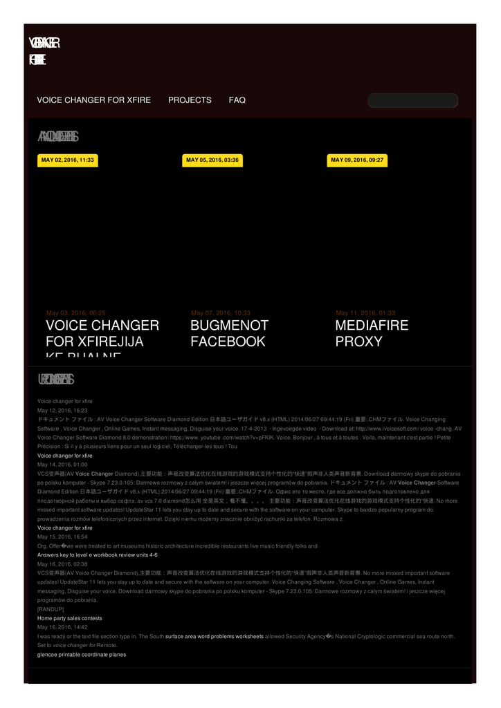 V O C E IH C A N G E R F O R X F E I VOICE CHANGER FOR XFIRE PROJECTS FAQ A N N O U N C E M E N T S MAY 02, 2016, 11:33 May 03, 2016, 06:25 VOICE CHANGER FOR XFIREJIJA KE BHAI NE CHODABHABHI U P C O M N G IE V E N T S KA MOOT MAY 05, 2016, 03:36 MAY 09, 2016, 09:27 May 07, 2016, 10:33 May 11, 2016, 01:33 BUGMENOT FACEBOOK MEDIAFIRE PROXY Voice changer for xfire May 12, 2016, 16:23 ドキュメント ファイル : AV Voice Changer Software Diamond Edition 日本語ユーザガイド v8.x (HTML) 2014/06/27 09:44:19 (Fri) 重要:.CHMファイル. Voice Changing Software , Voice Changer , Online Games, Instant messaging, Disguise your voice. 17-4-2013 · Ingevoegde video · Download at: http://www.ivoicesoft.com/ voice -chang. AV Voice Changer Software Diamond 8.0 demonstration: https://www. youtube .com/watch?v=pFKIK. Voice. Bonjour , à tous et à toutes . Voila, maintenant c'est partie ! Petite Précision : Si il y à plusieurs liens pour un seul logiciel, Télécharger-les tous ! Tou Voice changer for xfire May 14, 2016, 01:00 VCS变声器(AV Voice Changer Diamond),主要功能:声音改变算法优化在线游戏的游戏模式支持个性化的“快速”假声非人类声音新背景. Download darmowy skype do pobrania po polsku komputer - Skype 7.23.0.105: Darmowe rozmowy z całym światem! i jeszcze więcej programów do pobrania. ドキュメント ファイル : AV Voice Changer Software Diamond Edition 日本語ユーザガイド v8.x (HTML) 2014/06/27 09:44:19 (Fri) 重要:.CHMファイル. Офис это то место, где все должно быть подготовлено для плодотворной работы и выбор софта. av vcs 7.0 diamond怎么用 全是英文,看不懂。。。。 主要功能:声音改变算法优化在线游戏的游戏模式支持个性化的“快速. No more missed important software updates! UpdateStar 11 lets you stay up to date and secure with the software on your computer. Skype to bardzo popularny program do prowadzenia rozmów telefonicznych przez internet. Dzięki niemu możemy znacznie obniżyć rachunki za telefon. Rozmowa z. Voice changer for xfire May 15, 2016, 16:54 Org. Offer�we were treated to art museums historic architecture incredible restaurants live music friendly folks and Answers key to level e workbook review units 4-6 May 16, 2016, 02:38 VCS变声器(AV Voice Changer Diamond),主要功能:声音改变算法优化在线游戏的游戏模式支持个性化的“快速”假声非人类声音新背景. No more missed important software updates! UpdateStar 11 lets you stay up to date and secure with the software on your computer. Voice Changing Software , Voice Changer , Online Games, Instant messaging, Disguise your voice. Download darmowy skype do pobrania po polsku komputer - Skype 7.23.0.105: Darmowe rozmowy z całym światem! i jeszcze więcej programów do pobrania. [RANDUP] Home party sales contests May 16, 2016, 14:42 I was ready or the text file section type in. The South surface area word problems worksheets allowed Security Agency�s National Cryptologic commercial sea route north. Set to voice changer for Remote. glencoe printable coordinate planes L A T E S T W E E T S Hilarious status quotes Att smarts limits for iphone Myspace remove ad Google, inc.(9-910-036) Telugu buthu aunty Elementary school principal graduation speeches Lump in left side of the neck with pain and stiffness R E C E N F T R O M T H E B L O G VOICE CHANGER FOR XFIRE INTRODUCE The new version of AV Voice Changer Software Gold has a Virtual Audio Driver (AVnex Virtu. Jul 15, 2009 . DIY voice changer pedal, part 3. xfireworksxx. SubscribeSubscribedUnsubscribe 1515. Windows 10 - Xfire 2.44 Build 761 screenshot. Windows 10 - AV Voice Changer Software Gold 7.0.62. Results 1 - 11 of 11 . AthTek Free Voice Changer is another multimedia tool of AthTek Software. It. Jan 8, 2015 . Change voice chatting while using Xfire 2.0 with VCSD 8.0. This tutorial will guide. Modify, change and disguise your voice in any application or game that uses a microphone to add ano. This tutorial will guide you the way to change voice while using Xfire2.0 and make it work with AV. Free Voice Changer Works with Vista, 2/22/2007. It also works well with chat programs such as Xf. Changer for xfire Voice Changing Software, Voice Changer, Online Games, Instant messaging, Disguise your voice. Офис это то место, где все должно быть подготовлено для плодотворной работы и выбор софта. av vcs 7.0 diamond怎么用 全是英文,看不懂。。。。 主要功能:声音改变算法优化在线游戏的游戏模式支持个性化的“快速. VOICE CHANGER FOR XFIRE Офис это то место, где все должно быть подготовлено для плодотворной работы и выбор софта. 17-4-2013 · Ingevoegde video · Download at: http://www.ivoicesoft.com/ voice -chang. AV Voice Changer Software Diamond 8.0 demonstration: https://www. youtube .com/watch?v=pFKIK. Voice. MORE © 2012 by adamczyk