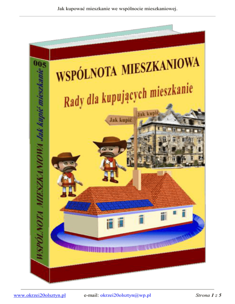 Jak kupować mieszkanie we wspólnocie mieszkaniowej. __________________________________________________________________________ _________________________________________________________________________ www.okrzei20olsztyn.pl e-mail: [email protected] Strona 1 z 5 Jak kupować mieszkanie we wspólnocie mieszkaniowej. __________________________________________________________________________ Zalecenia dla kupujących mieszkanie we wspólnocie mieszkaniowej. (opracowanie dotyczy wspólnot mieszkaniowych, w których nie określono sposobu zarządu w umowie, o której mowa w art. 18 ust. 1 Ustawy o własności lokali oraz nie ustanowiono zarządcy przymusowego przez Sąd - art. 26 Ustawy o własności lokali.) co nie oznacza, że nie mogą być w powyższych przypadkach wykorzystane. ____________________________ Sprawdź czy zarząd wspólnoty mieszkaniowej posiada legitymację czynną do reprezentowania wspólnoty, tj. czy został wybrany zgodnie z warunkami określonymi w Ustawie o własności lokali. Zapoznaj się z oryginałem uchwały o wyborze zarządu wspólnoty. Uchwała musi zawierać takie dane jak: nazwę / numer lokalu, nazwę, nazwisko/nazwiska właściciela/właścicieli lokalu, posiadane przez w/w osoby udziały, podpisy właścicieli lub ich pełnomocników (po okazaniu przez nich pełnomocnictw), czy ilość głosów (liczonych wg wielkości udziałów) przekracza 50% Jest to bezwzględny warunek ważności uchwał podejmowanych w tzw. dużych wspólnotach. Porównaj ilość podpisów właścicieli na uchwale z ilością podpisów właścicieli na liście obecności na zebraniu wspólnoty mieszkaniowej. Pamiętaj: Uchwała wspólnoty mieszkaniowej o wyborze zarządu wspólnoty jest jedynym dowodem legalnego kierowania sprawami wspólnoty i reprezentowania jej na zewnątrz oraz w stosunkach między wspólnotą a poszczególnymi właścicielami lokali. Wzór uchwały: zobacz przykład . Podstawa prawna: Ustawa o własności lokali art. 20, 23 Ustal kto jest zarządcą i administratorem wspólnoty. Sprawdź czy w skład zarządu wspólnoty nie wchodzi ktoś z gminy (jako osoba fizyczna). Pamiętaj, że jeżeli gmina jest właścicielem lokali we wspólnocie i jednocześnie jest zarządcą lub administratorem ewentualnie w skład zarządu wspólnoty mieszkaniowej wchodzi urzędnik gminy to nieomal pewne jest istnienie konfliktów interesów we wspólnocie. Pamiętaj, że jednostki gospodarcze, w których udziały posiadają gminy nie mają prawa prowadzić działalności gospodarczej w zakresie zarządzania nieruchomościami wspólnymi. Ustal jaki jest sposób ponoszenia kosztów zarządu nieruchomością. Właściciel winien ponosić koszty zarządu nieruchomości wspólnej stosownie do posiadanego udziału. W wielu wspólnotach rozlicza się koszty wg powierzchni lokalu właściciela co jest niezgodne z obowiązującym prawem. Jest to umysłowy relikt z okresu dawnego PRL-u. Zapoznaj się ze stanem technicznym nieruchomości wspólnej: piwnica, klatka schodowa, strych, dach, rynny, kominy, balkony, instalacja elektryczna, gazowa, wodociągowo-kanalizacyjnej, elewacja, zawilgocone ściany, mury itp. _________________________________________________________________________ www.okrzei20olsztyn.pl e-mail: [email protected] Strona 2 z 5 Jak kupować mieszkanie we wspólnocie mieszkaniowej. __________________________________________________________________________ Sprawdź czy należności za media i usługi (np. woda, ścieki, nieczystości stałe, CO, telewizja kablowa) pobrane - zużyte przez właścicieli na ich potrzeby własne i przez nich opłacane wpływają na konta odpowiednich firm. Są to środki finansowe przeznaczone na pokrycie wydatków związanych z utrzymaniem ich lokali a nie części wspólnej nieruchomości i są to nadal pieniądze właścicieli lokali, a nie wspólnoty. Nikt więc nie ma prawa bez wiedzy i zgody właściciela dowolnie dysponować tymi środkami finansowymi. Sprawdź czy wspólnota mieszkaniowa ma pisemną umowę o zarządzanie nieruchomością ze wskazaniem w szczególności zarządcy nieruchomości, którą może być tylko osoba fizyczna posiadająca licencję zawodową oraz ubezpieczenie od odpowiedzialności cywilnej za szkody wyrządzone w związku z wykonywaniem czynności zarządzania nieruchomościami. Posiadane ubezpieczenie przez zarządcę nieruchomości w znacznym stopniu może przyspieszyć uzyskanie odszkodowania za popełnione przez niego szkody w porównaniu z postępowaniem przed sądami cywilnymi. Sprawdź czy wspólnota jest ubezpieczona od odpowiedzialności cywilnej, zdarzeń losowych. Połączenie tej informacji z np. brakiem prawnego umocowania do działania w imieniu wspólnoty (brak uchwały o wyborze zarządu wspólnoty mieszkaniowej) skutkować będzie poważnymi konsekwencjami finansowymi. Ustal czy istnieje fundusz remontowy, jak wysokie są zaliczki, ile zgromadzonych środków finansowych znajduje się na koncie funduszu remontowego, czy wszyscy systematycznie, na bieżąco wpłacają zaliczki a jeśli nie jakie jest zadłużenie. Powiąż te informacje ze stanem kamienicy. Zorientuj się jak w danej wspólnocie mieszkaniowej traktowane są wpłaty – zaliczki na fundusz remontowy i zgromadzone na nim środki finansowe szczególnie w sytuacji zmiany właścicieli lokalu. Wobec różnych, sprzecznych orzeczeń sądowych nawet Sądu Najwyższego, niezgodnych nawet z zapisami Konstytucji (art. 21 ust. 2 Wywłaszczenie jest dopuszczalne jedynie wówczas, gdy jest dokonywane na cele publiczne i za słusznym odszkodowaniem.) rozliczanie funduszu remontowego może być konfliktogenne. Zrób to samo z funduszem z którego pokrywane są wydatki na bieżące utrzymanie nieruchomości wspólnej. Pamiętaj, jeśli kamienica ma lat kilkadziesiąt (ponad 50 lat o wartości większej niż 50 000 euro to już może być zabytkiem – wpis do rejestru zabytków) wymagać będzie dużo większych nakładów finansowych na bieżą
