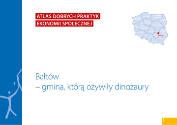 ATLAS DOBRYCH PRAKTYK EKONOMII SPOŁECZNEJ zachodnio -pomorskie warmińsko -mazurskie podlaskie Bałtów Bałtów – gmina, którą ożywiły dinozaury 1 ATLAS DOBRYCH PRAKTYK EKONOMII SPOŁECZNEJ Ten tytuł wymaga kilku słów wyjaśnienia Co to jest ekonomia społeczna? Pojęcie ekonomii społecznej jest bardzo szerokie. Do Atlasu włączyliśmy instytucje, które z jednej strony uczestniczą w systemie ekonomicznym, ale z drugiej strony kieruje nimi silne poczucie odpowiedzialności za los osób i społeczności zaangażowanych w działania. Innymi słowy są to przedsięwzięcia, których celem jest działalność społeczna, a narzędziem – nie zawsze jedynym – rynek. Oznacza to podejmowanie wysiłków, aby konkretne osoby, organizacje czy wspólnoty mogły w większym stopniu niż dotychczas podejmować suwerenne decyzje co do celu i form swojej działalności. W pojęcie ekonomii społecznej wpisują się instytucje zarówno tzw. starej ekonomii społecznej (takie jak spółdzielnie), jak i nowej (np. spółdzielnie socjalne), a także ekonomizujące się instytucje trzeciego sektora. To co je łączy to fakt, że starają się przy użyciu instrumentów ekonomicznych bezpośrednio lub pośrednio przeciwdziałać zjawiskom wykluczenia społecznego i działać na rzecz szerzej rozumianego rozwoju społeczności lokalnych. Dlaczego te dobre praktyki są dobre? Celowo i świadomie używamy tego określenia dla prezentowanych w Atlasie działań. Znalazły się tu przedsięwzięcia, które w naszym przekonaniu z powodzeniem zmieniają na lepsze życie zaangażowanych w nie ludzi i społeczności. Są to też w większości przedsięwzięcia funkcjonujące już od jakiegoś czasu i sprawdzone w działaniu. Mamy świadomość, że istnieje wiele dobrych praktyk, które nie znalazły się jeszcze w Atlasie. Dlatego będziemy go stopniowo uzupełniać. Mamy nadzieję, że przedsięwzięcia opisane już w Atlasie przy pewnej dozie determinacji i gotowości do wspólnego działania mogą stać się inspiracją dla innych, a tym samym przyczynić się do rozwoju ekonomii społecznej w Polsce. Redakcja Atlasu Bałtów – gmina, którą ożywiły dinozaury Pięć lat temu mieli zarośniętą rzekę, biedę, bezrobocie. Dziś bezrobocie jest minimalne, rzeką płyną tratwy z turystami, a o Parku Jurajskim słyszała cała Polska. Co roku przyjeżdża tu ponad 200 tysięcy turystów. Zapaleńcom z Bałtowa udało się umiejętnie połączyć działania społeczne z ekonomicznymi. Misja przedsięwzięcia Kontekst przedsięwzięcia Rozwój gminy zagrożonej bezrobociem oraz stworzenie mieszkańcom szansy na lepsze życie. Założyciele stowarzyszenia „chcieli mieć pracę i żyć godnie. Tu – w Bałtowie”. Gmina Bałtów liczy 4 tys. mieszkańców, leży w powiecie ostrowieckim w województwie świętokrzyskim. Tutejsze gospodarstwa są rozdrobnione, a wobec niskiej jakości gleb oraz rzeźby terenu ukształtowanej przez wapienne skały i jary perspektywy rozwoju rolnictwa są nikłe. Upadająca Huta Ostrowiec, największy pracodawca w powiecie, musiała zwolnić blisko 13 tys. osób. W efekcie stopa bezrobocia w Bałtowie w latach 2002–2003 przekroczyła 30 proc. Nazwa organizacji Stowarzyszenie na Rzecz Rozwoju Gminy Bałtów „Bałt” Adres: Bałtów 55, 27-423 Bałtów, tel./fax. (0 41) 264 12 93, e-mail: [email protected] Osoba kontaktowa: Jarosław Kuba, Dyrektor Generalny, tel. (0 41) 264 12 93, 506 151 191 e-mail: [email protected] [email protected] Rodzaj działalności: przeciwdziałanie bezrobociu Rok powstania: 2001 www: www.baltow.info Stowarzyszenie na rzecz Rozwoju Gminy Bałtów „Bałt” 29-metrowy, roślinożerczy diplodok oko w oko z drapieżnym allozaurem pozyskiwaniem środków z Unii Europejskiej („bo Bałtowiacy nie żebracy!”). W 2002 roku budżet gminy wynosił tylko 4,5 mln złotych, z czego dochody własne stanowiły niecałe 25 proc. Cele 1. Poprzednie władze gminy niewiele w tej kwestii zrobiły – nie było kanalizacji, wodociągów, telefonii komórkowej, oczyszczalni ścieków, ani ośrodków kultury, zespołów ludowych, czy świetlic wiejskich. Władze nie były także zainteresowane 2. 3 Ożywienie gospodarcze gminy, głównie dzięki turystyce. Rozwój przedsiębiorczości, m.in. agroturystyki i lokalnego rzemiosła. Zmniejszenie bezrobocia w gminie poprzez tworzenie miejsc pracy w turystyce i rzemiośle. 3. 4. Rozwój wspólnoty lokalnej dzięki odtworzeniu i kultywowaniu m.in. tradycji rękodzieła ludowego. Rozwój infrastruktury technicznej, która służy mieszkańcom i umożliwia rozwój działalności gospodarczej. Historia W 2001 roku spotkali się ci mieszkańcy Bałtowa, którzy uznali, że tak dalej żyć się nie da, że trzeba powstrzymać degradację gminy. Znajdowali się wśród nich nauczyciele, rolnicy, rzemieślnicy i przedsiębiorcy. Niekwestionowanym liderem tej grupy był Piotr Lichota, którego odwaga i charyzma porwała wszystkich do działania. Dzisiaj z dumą mieszkańcy mogą powiedzieć że podjęte wyzwanie i ryzyko w 2001 roku było strzałem w dziesiątkę, a człowiek, którego poparli nigdy ich nie zawiódł. I jak na dobrego przywódcę przystało, Piotr Lichota cały czas budował i buduje zespół ludzi do coraz to nowych wyzwań. – To był prawdziwie oddolny ruch, energia zrodzona przez sprzeciw – mówi dziś Jarosław Kuba, Dyrektor Generalny Stowarzyszenia na Rzecz Rozwoju Gminy Bałtów „Bałt”. Bałtów ma ciekawą historię i wspaniałe walory przyrodnicze – jurajskie wapienne skały, malowniczą rzekę Kamienną o bujnie porośniętych brzegach. Żyją tu bobry, dzikie kaczki i czarne bociany. Grupa inicjatywna oceniła „stan posiadania” gminy i uznała, że takie bogactwo naturalne może się stać podstawą rozwoju turystyki. W sierpniu 2001 roku rozpoczęło działalność Stowarzyszenie na Rzecz Rozwoju Gminy Bałtów „Bałt”. Grupa założycieli liczyła aż 120 osób! Jes