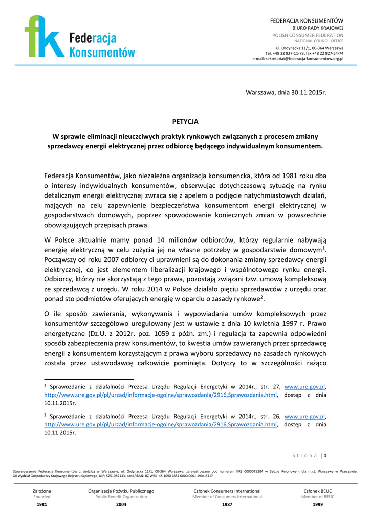 Pełna treść petycji - Federacja Konsumentów