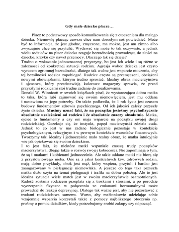 Gdy małe dziecko płacze… - Poradnia Psychologiczno