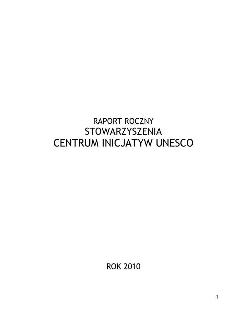 RAPORT ROCZNY STOWARZYSZENIA CENTRUM INICJATYW UNESCO ROK 2010 1 MISJA Stowarzyszenie Centrum Inicjatyw UNESCO powstało w 2005 roku (do 2008 działało pod nazwą Centrum Edukacji Globalnej) przede wszystkim z myślą, by angażowad ludzi w rozwój społeczeostwa opartego na szacunku dla różnorodności i poczuciu odpowiedzialności za środowisko naturalne i społeczne. CELE Dla realizacji swojej misji Stowarzyszenie stawia sobie następujące cele: - prowadzenie działao w zakresie edukacji, oświaty i wychowania, w szczególności w zakresie promowania i prowadzenia edukacji globalnej i europejskiej, edukacji dla demokracji, na rzecz praw człowieka oraz pokoju, - upowszechnianie i ochrona wolności i praw człowieka oraz swobód obywatelskich, a także działania wspomagające rozwój demokracji, w szczególności inicjowanie działao na rzecz tworzenia społeczeostwa obywatelskiego i jego wszechstronny rozwój, a także promowanie poszanowania praw człowieka, przeciwdziałanie dyskryminacji i wykluczeniu społecznemu we wszystkich obszarach życia społecznego, - działania na rzecz integracji europejskiej oraz rozwijania kontaktów i współpracy między społeczeostwami, w szczególności promowanie idei budowania wspólnoty paostw i narodów w oparciu o wzajemne zrozumienie, wymianę doświadczeo oraz osiągnięd na płaszczyźnie politycznej, społeczno – kulturowej, ekonomicznej i organizacyjnej a także propagowanie idei integracji europejskiej. Powyższe cele realizowane są poprzez: - organizowanie kursów, wystaw, pokazów, odczytów, dyskusji, sympozjów, seminariów, konferencji, warsztatów i programów edukacyjnych itp., zgodnych z celami Stowarzyszenia - organizowanie współpracy międzynarodowej z instytucjami i organizacjami o podobnym profilu działania - współpracę z instytucjami publicznymi i niepublicznymi oraz organizacjami pozarządowymi, działającymi w zakresie objętym celami Stowarzyszenia - działalnośd informacyjno – wydawniczą - działalnośd gospodarczą w ramach obowiązujących przepisów - inne działania sprzyjające rozwojowi statutowych celów organizacji - popieranie i rozwijanie inicjatyw zgodnych z celami Stowarzyszenia 2 ZARZĄD W roku 2010 roku podczas Walnego Zebrania dokonano wyboru nowego składu Zarządu Stowarzyszenia. Władza w Stowarzyszeniu sprawowana jest obecnie w następującym składzie: Katarzyna Szajda – Przewodnicząca Damian Drużkowski – Przewodniczący Magdalena Kudelska – Członkini Zarządu Dorota Dobkowska – Członkini Zarządu Piotr Dobrosz – Sekretarz WALNE ZGROMADZENIE Podczas corocznego Walnego Zgromadzenia, w dniu 10 kwietnia 2010 roku, wybrano nowy Zarząd, Komisję Rewizyjną (w składzie: Magdalena Hoszowska, Alicja Meisel, Justyna Hull ), omówiono prace Stowarzyszenia w roku 2009 oraz plany na rok 2010. STRONA INTERNETOWA STOWARZYSZENIA Od roku 2009 pod adresem www.unescocentre.pl działa strona Stowarzyszenia w polskiej i angielskiej wersji językowej. Na stronie dostępne są m.in. informacje o projektach organizowanych przez Stowarzyszenie, projektach, w których Stowarzyszenie brało udział, a także oferta warsztatowa. Ponadto strona jest na bieżąco aktualizowana, zamieszczane są również zdjęcia. Strona internetowa jest narzędziem promocji oraz komunikacji z naszymi odbiorcami – uczestnikami projektów, partnerami, instytucjami wspierającymi nasze działania. W połowie roku 2010 zaprzestano korzystania z platformy komunikacyjnej ning, a rozpoczęto korzystanie z bloga pod adresem http://www.unescocentre.blogspot.com/, który służy teraz Członkom i Członkiniom do porozumiewania się, zamieszczania dokumentów i materiałów, uzupełniania na bieżąco informacji o aktualnych projektach i inicjatywach. Pierwotnie ning, a w chwili obecnej blog wspiera proces komunikacji wewnętrznej pomiędzy członkami stowarzyszenia. Ponadto członkowie oraz członkinie stowarzyszenia korzystają z programu Dropbox, który umożliwia zamieszczane na wirtualnym dysku twardym istotnych dla wszystkich dokumentów. W 2010 zakooczyły się też prace nad nową ulotką informacyjną stowarzyszenia. Ulotka została wydana w językach polskim i angielskim. UZYSKAMIE STATUSU ORGANIZACJI POŻYTKU PUBLICZNEGO 3 Centrum Inicjatyw UNESCO uzyskało status Organizacji Pożytku Publicznego uchwałą z dnia 10 kwietnia 2010, co zostało potwierdzone wpisem do Krajowego Rejestru Sądowego dnia 27 października 2010 roku. PRZYNALEŻNOŚD DO DOLNOŚLĄSKIEJ RADY DS. MŁODZIEŻY Od listopada 2010 Centrum Inicjatyw UNESCO przynależy do federacji dolnośląskich organizacji pozarządowych Dolnośląska Rada ds. Młodzieży. Rada została powołana na rzecz wspierania budowy społeczeostwa obywatelskiego Dolnego Śląska. Podstawowym zadaniem Rady jest wzmacnianie organizacji członkowskich w realizacji ich misji oraz współpraca z instytucjami publicznymi w kształtowaniu wysokiej jakości regionalnej polityki młodzieżowej. DZIAŁALNOŚD STOWARZYSZENIA Stowarzyszenie zostało zaproszone do udziału w kilku międzynarodowych inicjatywach w roli partnera. Centrum Inicjatyw UNESCO uczestniczyło w długofalowym projekcie „I love culture”, w którym wzięły udział także zespoły z Holandii, Estonii, Turcji, Hiszpanii, Czech, Słowenii, Węgier oraz Malty. W styczniu 2010 członkowie stowarzyszenia byli uczestnikami szkolenia na Słowenii, na którym wykorzystywano metody multimedialne. Natomiast w październiku 2010, w Holandii, odbyło się kolejne spotkanie mające formę seminarium podsumowującego dotychczasową współpracę. Celem obydwu spotkao było stworzenie strony internetowej będącej platformą komunikacji pomiędzy organizacjami i wymiany dobrych praktyk między nimi. Projekt ten jest realizowany w ramach programu Młodzież w Działaniu. Więcej na stronie projektu: http://www.iloveculture.eu/. W 2010 roku miały miejsce trzy spotkania partnerskie w ramach długofalowego projektu „Bo