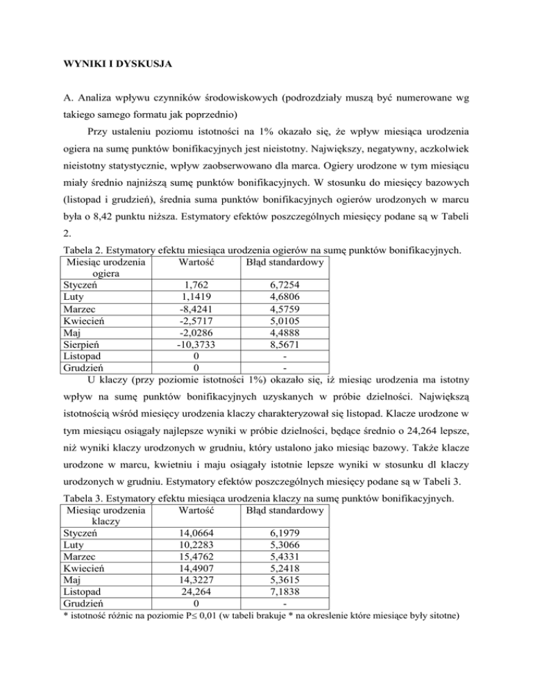 WYNIKI I DYSKUSJA A. Analiza wpływu czynników środowiskowych