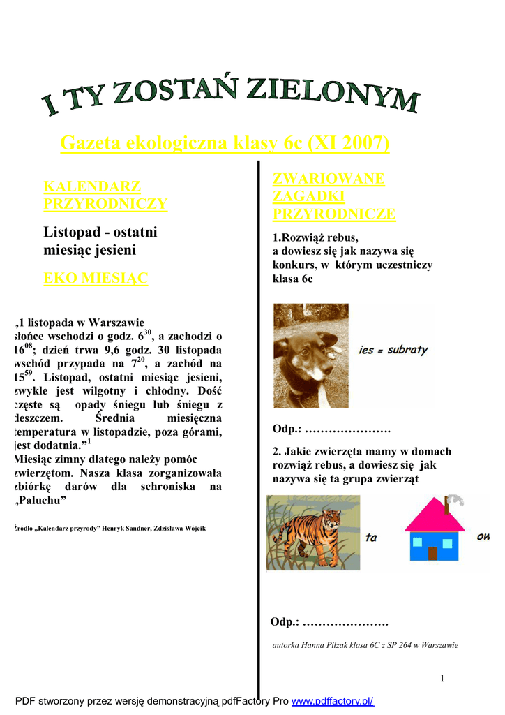 Gazeta ekologiczna klasy 6c (XI 2007)