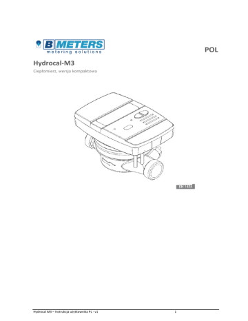 POL Hydrocal-M3 Ciepłomierz, wersja kompaktowa Hydrocal M3 – Instrukcja użytkownika PL - v1 1 SPIS TREŚCI INSTRUKCJA UŻYTKOWNIKA ...................................................................................................................... 3 WSTĘP .............................................................................................................................................................. 3 ZAWARTOŚĆ OPAKOWANIA ........................................................................................................................ 3 OGÓLNE INFORMACJE ................................................................................................................................. 3 INSTALACJA .................................................................................................................................................... 4 WYŚWIETLACZ I PRZYCISKI ...................................................................................................................... 11 PROGRAMOWANIE ...................................................................................................................................... 12 MENU CIEPŁOMIERZA ................................................................................................................................ 14 URUCHOMIENIE ........................................................................................................................................... 18 BŁĘDY I USTERKI ......................................................................................................................................... 18 DANE TECHNICZNE ..................................................................................................................................... 20 Hydrocal M3 – Instrukcja użytkownika PL - v1 2 INSTRUKCJA UŻYTKOWNIKA Instalacji może dokonać wyłącznie wykwalifikowany personel. BMETERS nie ponosi odpowiedzialności za nieprawidłową instalację lub szkody spowodowane przez osoby trzecie. Ostrzeżenie Ciepłomierz zawiera potencjalnie niebezpieczne baterie: należy zachować ostrożność i wyrzucać tylko do koszy specjalnie do tego przeznaczonych. WSTĘP Ciepłomierz Hydrocal-M3 to nowoczesny ciepłomierz dedykowany dla mieszkań i małych domów, produkowany przez BMETERS. Różnica temperatur mierzona przez precyzyjne czujniki temperatur w połączeniu z pomiarem przepływu wody umożliwia naliczanie energii ciepła i chłodu z bardzo wysoką precyzją. Kompaktowa konstrukcja ciepłomierza Hydrocal-M3 zaprojektowana została zgodnie z najnowszymi trendami w dziedzinie opomiarowania ciepła. Bezmagnesowa transmisja między przetwornikiem przepływu, a jednostką elektroniczną zapewnia niezawodność działania, wysoką stabilność pomiarową, niskie progi rozruchu oraz pełne zabezpieczenie przed próbą oddziaływania na urządzenie polem magnetycznym. Ciepłomierz jest kompatybilny z systemem zdalnego odczytu HYDROLINK umożliwiając uzyskanie danych drogą radiową (W-MBUS zgodnie z OMS) lub przewodową (M-BUS lub impuls). Pozwala również na podłączenie 2 wodomierzy impulsowych oferując tym samym szeroki wachlarz zastosowania. ZAWARTOŚĆ OPAKOWANIA • Ciepłomierz Hydrocal-M3 • Instrukcja użytkownika • Plomba • Deklaracja zgodności OGÓLNE INFORMACJE Przed instalacją i konfiguracją produktu proszę uważnie przeczytać niniejszą instrukcję. W przypadku dodatkowych pytań natury technicznej proszę skontaktować się z działem pomocy technicznej pod adresem: [email protected] Instalacji może dokonać wyłącznie wykwalifikowany personel. Przyrząd jest zgodny z EN1434 (1-6) i dyrektywą 2004/22/CE (załącznik MI-004). Wszelka ingerencja w ciepłomierz lub usunięcie plomb powoduje utratę gwarancji. Na potrzeby poprawności zliczania energii należy zawsze przestrzegać zalecanego typu montażu (montaż na zasilaniu / montaż na powrocie). Należy zawsze przestrzegać oznaczeń na osłonie ciepłomierza. Hydrocal M3 – Instrukcja użytkownika PL - v1 3 INSTALACJA Część Hydrauliczna PRZED MONTAŻEM Przed instalacją ciepłomierza należy upewnić się, że gwint ciepłomierza odpowiada gwintowi półśrubunków. Należy ponadto upewnić się, czy na wlocie ciepłomierza znajduje się filtr oraz czy po obu stronach umieszczono czyste i nieuszkodzone uszczelki. Przed i za ciepłomierzem powinny być zamontowane zawory, które umożliwią zamknięcie przepływu czynnika grzewczego podczas kontroli i wymiany ciepłomierza. Należy zwracać uwagę na kierunek przepływu. Ciepłomierz należy zamontować zgodnie z przepływem wody, według kierunku wskazanego symbolem strzałki na korpusie ciepłomierza. Ciepłomierz należy zamontować zgodnie z oznaczeniem pozycji - pion, poziom. (zgodnie ze wskazaniem na obudowie ciepłomierza). Aby ciepłomierz wykonywał pomiary poprawnie, należy upewnić się, że w instalacji nie zalega powietrze, a w czynniku grzewczym nie ma większych zanieczyszczeń (potencjalnie niebezpieczne dla turbiny ciepłomierza). MONTAŻ Należy zawsze przestrzegać zalecanego typu montażu (rura zasilająca/rura powrotna). Należy zawsze przestrzegać informacji na obudowie ciepłomierza. Poniższy schemat przedstawia typowy montaż ciepłomierza w wersji standardowej (montaż na powrocie i montaż poziomy). Hydrocal M3 – Instrukcja użytkownika PL - v1 4 DOZWOLONE POZYCJE MONTAŻU Wszystkie wersje ciepłomierzy można montować zarówno poziomo, jak i pionowo. W przypadku montażu pionowego należy upewnić się, że przepływ jest skierowany w górę. Dla lepszej wydajności zaleca się jednak montaż poziomy, w którym oś turbiny jest w pozycji ozycji prostopadłej do ziemi, zaś mechanizm odczytu skierowany w górę. Dozwolona pozycja. Optymalna pozycja pozwalająca uzyskać lepszą dokładność. dokładność Dozwolone pozycje. Nie wolno montować ciepłomierza „do góry nogami” (patrz rys. poniżej).