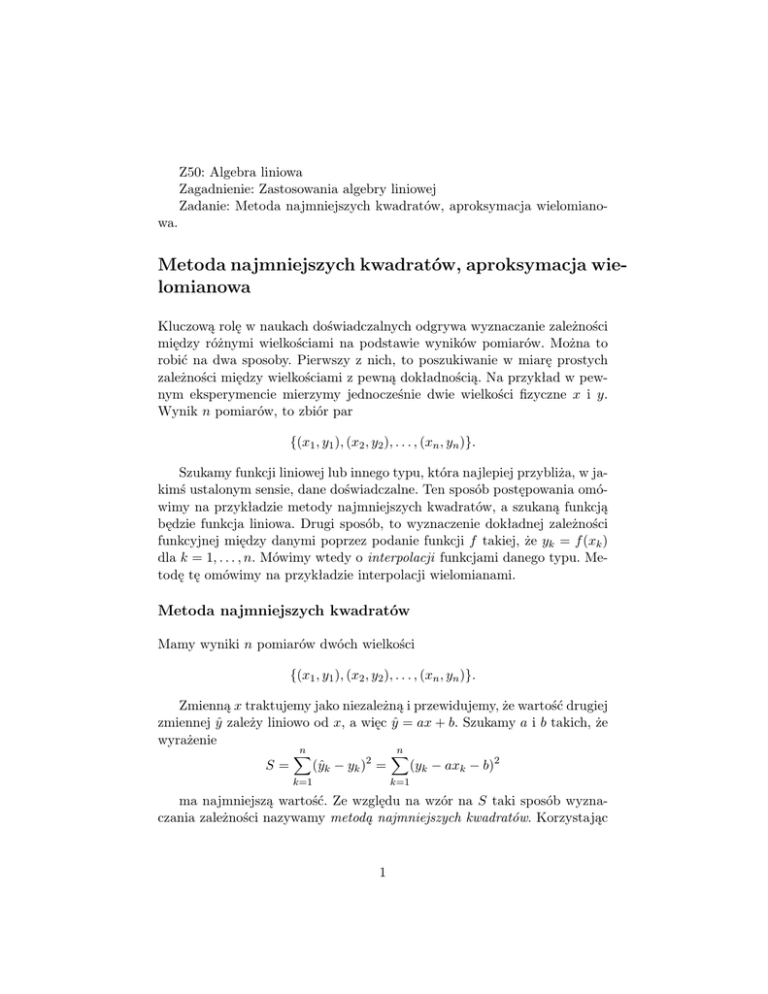 Zadanie: Metoda najmniejszych kwadratów, aproksymacja wielomianowa.