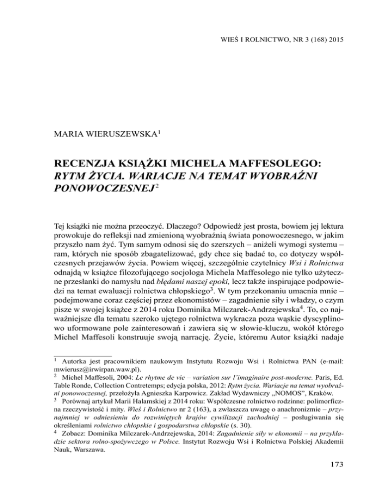 RECENZJA KSIĄŻKI MICHELA MAFFESOLEGO: RYTM ŻYCIA