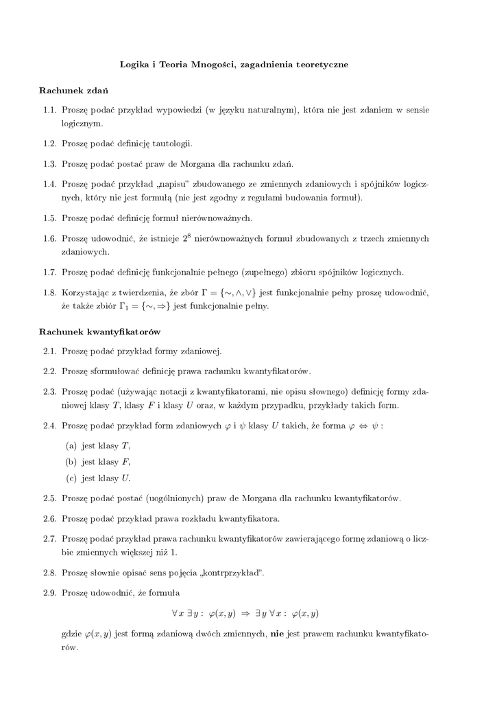Logika i Teoria Mnogo±ci, zagadnienia teoretyczne