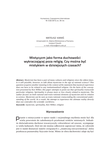 Mateusz Karaś Mistycyzm jako forma duchowości wykraczającej