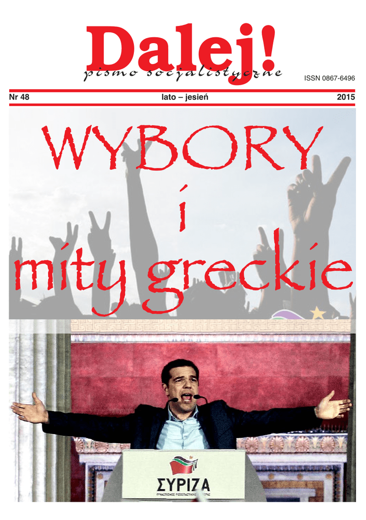 Dalej! WYBORY i mity greckie pis mo socjalist y c z n e Nr 48 lato – jesieƒ ISSN 0867-6496 2015 Wybory ? W ostatnich miesiącach mieliśmy do czynienia z postępującą destabilizacją polskiej sceny politycznej. Po 8 latach neoliberalnej propagandy sukcesu rządy PO-PSL wydają się bliskie końca. „Taśmy prawdy” ukazały czołowych polityków Platformy Obywatelskiej jako skończonych cyników i aferzystów. Okazało się, że za parawanem patriotycznych śpiewek uważają oni, że Polska to „kamieni kupa”, „państwo istnieje tylko teoretycznie”, przyjaźń z USA to de facto „robienie laski”, przez lata rząd jedynie pozorował działania dla polskiego górnictwa itp. A jeszcze ciekawsza okazała się wiosenna kampania wyborcza. Oto bowiem kandydat PiS złamał tabu z jakim mieliśmy przez lata w polskiej polityce. A mianowicie przeciwstawił biernemu safandule Komorowskiemu nie tylko młodość i dynamizm ale też szeroki pakiet obietnic socjalnych. Duda obiecał obniżenie wieku emerytalnego z 67 lat do 60 lat dla kobiet i 65 lat dla mężczyzn. Obiecał podniesienie kwoty wolnej od podatku z 3 do 8 tysięcy zł. Obiecał dopłaty po 500 zł na każde dziecko dla rodzin najbiedniejszych oraz po 500 zł na drugie i każde kolejne dziecko w reszcie rodzin. Obiecał też przewalutowanie kredytów zaciągniętych we franku szwajcarskim po kursie, w jakim kredyty zostały zaciągnięte. Duda chciałby również zapewnić wszystkim rodzicom dostęp do darmowych przedszkoli. Ile z tych obietnic zrealizuje – nikt nie wie ale w obliczu zwycięstwa Dudy stało się jasne, że powiało nowym w polskiej polityce – jeśli chcesz wygrać wybory musisz coś ludziom zaoferować, skończyło się głosowanie na bajki, że już jest świetnie i jesteśmy wspaniałą „zieloną wyspą”. W takiej atmosferze mamy nadzieję na aktywizację klasy pracowniczej i ruchów oporu wobec liberalnego wyzysku. Mamy nadzieję, że związki zawodowe i grupy pracownicze będą w stanie zrealizować wiele swoich postulatów, staną się skuteczniejsze w wywieraniu presji politycznej, że słabnąć będzie 1 Mam fajne JOW-y… neoliberalny dyktat w debatach publicznych w Polsce, że bardziej słyszalne i popularne staną się w debacie publicznej głosy reprezentujące rozwiązania socjalne. Oczywiście nie oznacza to, że perspektywa powrotu do władzy w miejsce liberałów prawicy konserwatywnej nie budzi różnych naszych obaw – wolimy jednak koncentrować się na szansach ja- kie powstają dla ruchów lewicowych. Znacznie gorszym nowym zjawiskiem jakie objawiało się w polskiej polityce w konsekwencji majowych wyborów prezydenckich jest fenomen Pawła Kukiza (skądinąd wypowiadającego się kiedyś na naszych łamach). Proponowane przez niego JOWy to wbrew temu co twierdzi, nie „przywrócenie władzy obywatelom” ale wręcz przeciwnie najkrótsza droga do oligarchii. JOWy nie będą w Polsce promować żadnych lokalnych społeczników, ale bogaczy do których należy całe miasto czy powiat. JOWy nie uderzą też w zbiurokratyzowane partie polityczne. Będzie dokładnie odwrotnie. Władza central partyjnych zostanie jeszcze bardziej wzmocniona bo do zdobycia w okręgu nie będzie kilku mandatów ale jeden. Jeśli zwycięży koncepcja JOWów to jaka będzie skala regresu jeśli chodzi o reprezentowanie obywateli w i tak niedoskonałym systemie parlamentarnym? Olbrzymia. Załóżmy, iż w ośmiomandatowym okręgu wyborczym startowały cztery stronnictwa uzyskując odpowiednio: partia A – 26%, partia B – 25%, partia C – 25% i partia D – 24%. Do sejmu wejdzie wtedy ośmiu posłów, po dwóch z każdego ugrupowania. Każda grupa wyborców ma swoich przedstawicieli. W przypadku okręgów jednomandatowych stronnictwo A mając zaledwie 26% poparcia zdobędzie wszystkie osiem mandatów. 74% wyborców nie będzie więc w ogóle miało swojej reprezentacji. Wprowadzenie JOWów oznaczałoby wzmocnienie dwu największych partii – PO i PiS i marginalizcję wszystkich innych. Nie ulega wątpliwości, że w szczególności dotkliwie uderzyłoby to w polską lewicę i tak słabą, od lat niszczoną przez prawicę oraz liberałów z SLD i dopiero ostatnio wykazującą oznaki przebudzenia. Stare twarze na lewicy Do październikowych wyborów po lewej stronie sceny politycznej stanie przede 2 wszystkim Zjednoczona Lewica powstała na bazie porozumienia SLD, Twojego Ruchu i wielu mniejszych ugrupowań. Lista zdrad SLD wobec lewicowego wyborcy jest niesłychanie długa. Kto godził się na prywatyzację majątku narodowego, popierał amerykańskie interwencje, godził się na wszelkie koncesje wobec Kościoła, liberalizował Kodeks Pracy, organizował katownie CIA w Polsce – przywódcy SLD. Twój Ruch – istniejący tylko kilka lat – skompromitował się z kolei popierając podniesienie wieku emerytalnego, broniąc aferalnych Otwartych Funduszy Emerytalnych, wzywając do interwencji NATO na Ukrainie. Mimo, że akuszerem porozumienia podmiotów tworzących Zjednoczoną Lewicą było OPZZ nie zagwarantowało, że na listach porozumienia nie znajdą się ci sami od lat skompromitowani działacze a SLD po raz pierwszy w swej historii podejmie realne działania na rzecz świata pracy. Nie lepiej jeśli idzie o pryncypia wygląda jednak zlepek różnych partyjek lewicowych które chcą startować jako druga „Zjednoczona Lewica”. W jej skład weszli m.in. Biało-Czerwoni, Wolność i Równość, Polska Partia Pracy, Socjaldemokracja Polska. W czym liberałowie Jan Hartman, Andrzej Rozenek i Grzegorz Napieralski mieliby być lepsi niż bonzowie SLD? Jeśli w ogóle mielibyśmy oddawać swój głos na pierwszą czy drugą Zjednoczoną Lewicę, to nie jako taką, ale co najwyżej lewicowe jednostki, które mogą pojawić się na jej listach. Nowe inicjatywy Od lat upatrywaliśmy nadzieję na odrodzenie się lewicy w polskiej polityce w powstaniu konkurencji dla SLD. W tym roku objawiły się d