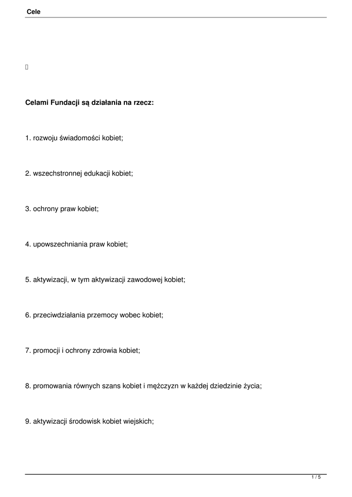 1. rozwoju świadomości kobiet - Fundacja Kobieta Nowego Czasu