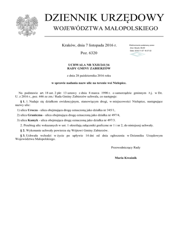 Uchwala Nr XXII/241/16 z dnia 28 pazdziernika 2016 r.