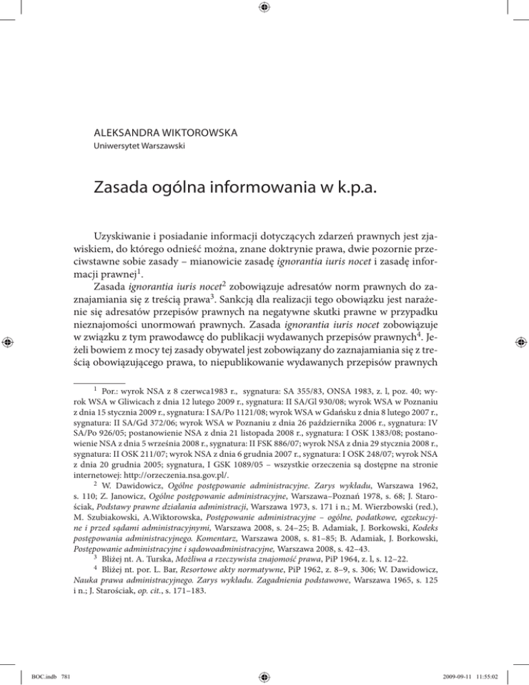 A. Wiktorowska, Zasada ogólna informowania w k.p.a.