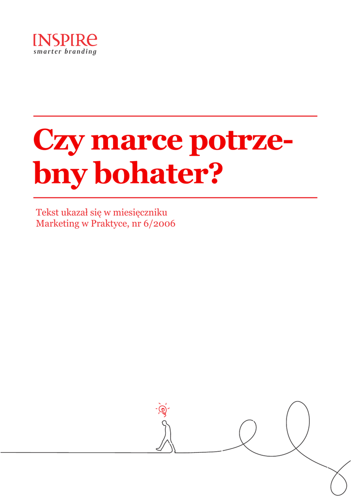 Czy marce potrzebny bohater? Tekst ukazał się w miesięczniku Marketing w Praktyce, nr 6/2006 Czy marce potrzebny bohater? W czasach, gdy półki sklepowe stają się coraz bardziej zatłoczone, wyróżnienie marki coraz trudniejsze, a szum reklamowy znacznie utrudnia zapamiętanie czegokolwiek, konieczne jest znalezienie elementu marki na tyle charakterystycznego, aby zapadł w pamięć nabywców, wyraźnie wyróżnił markę i skutecznie zakomunikował jej wartości, a jednocześnie budził sympatię. Takim elementem może być bohater marki (Brand Hero). Czym (kim) jest Brand Hero? Bohater, ikona marki to coś więcej niż składnik logo. Są bohaterowie marki, ale są też znaczki, ozdobniki, które komunikują różne wartości, ale do bohaterów im daleko. Różnicę wyznacza sytuacja, kiedy w zbiorowisku podobnych postaci można bez trudu zidentyfikować tę jedyną, przypisaną konkretnej marce. Jednak sama rozpoznawalność to za mało – Brand Hero to postać, w którą poprzez zabiegi marketingowe tchnięto życie. Po co marce bohater? Co może dla niej zrobić? Jak stworzyć bohatera? Odpowiedź na te pytania nie jest łatwa i wymaga prac u podstaw, czyli zrozumienia istoty marki. Marka to pewna historia, opowieść o produkcie, korzyściach, emocjach, doznaniach, wartościach, o jej filozofii i świecie, który tworzy. Opowieść o czymś, co często trudno ubrać w słowa. Jak przekazać takie bogactwo znaczeń nabywcom, którzy w życiu codziennym skupiają się raczej na sprawach przyziemnych, nie mają czasu i ochoty czytać między wierszami i doszukiwać się drugiego dna? Można to zrobić tak, jak uczy się dzieci, jak działa świat. Aby pokazać dziecku skomplikowany świat dobra i zła, różnorodności ludzkich charakterów, tworzy się baśnie, które są opowieściami, podobnie jak marki. W baśniach natomiast występują postacie, których odmienność i unikalność tworzyć można, nadając im odpowiedni wygląd, cechy charakteru, sposób bycia, poruszania się, sposób wyrażania emocji… Podobnie z opowieścią marki – czasem pewne jej cechy, te najistotniejsze, a jednocześnie najbardziej nieuchwytne, oddać można poprzez stworzenie ikony, postaci, bohatera, który zacznie żyć własnym życiem, 1 Czy marce potrzebny bohater? rysunkowy, poważny, humorystyczny) może być wykorzystany zarówno w przypadku produktów skierowanych do dorosłych, jak i do dzieci. Bohaterowie abstrakcyjni idealnie wpasowują się w dziecięcy świat i dają duże możliwości manewru właścicielowi marki – gdy dziecko pokocha bohatera marki (tak jak jest w stanie pokochać postać bajkową), to zechce mieć swojego ulubieńca na plakacie, piórniku, tornistrze… Bohaterowie abstrakcyjni pozwalają na większą swobodę, a kreatywność w ich przypadku ogranicza jedynie określone pozycjonowanie marki. Kim są ci bohaterowie? Jednym z najnowszych na polskim rynku bohaterów marki jest powołany do życia jesienią 2005 Manuel – imiennik mixu z masłem. Jest to mężczyzna o wyglądzie i temperamencie Hiszpana, który znienacka pojawia się pod drzwiami młodej gospodyni domowej, by z poezją i kunsztem wykonać czynność, której jest wielbicielem - posmarować kanapkę. W kolejnym spocie Manuel zadomawia się w kuchni na dobre, jednak ze zdumieniem reaguje na prośbę o powieszenie firanek – przecież on jest od smarowania kanapek. Tym samym wyraźnie określa swoją tożsamość jako Brand Hero. Manuel jako postać nadaje marce, należącej do mało emocjonalnej kategorii, świeżości, oryginalności, a przede wszystkim umożliwia stworzenie komunikatu w tym segmencie wyjątkowego, opartego na emocjach i humorze. Kolejny Brand Hero stworzony na podstawie postaci ludzkiej to góral piwa Tatra Pils i Tatra Mocne – pojawia się on zarówno na opakowaniu, jak i w komunikacji ATL; w spotach reklamowych postać górala budowana jest wokół cech takich jak siła charakteru (moc z charakterem), życie w zgodzie z naturą ale w centrum świata marki. Brand Hero jest jednym ze sposobów zbudowania wizerunku osobowości marki, a więc elementu odpowiedzialnego za jej emocjonalny obraz w umysłach nabywców. Budując koncept bohatera marki, warto wziąć przykład z autora powieści, który wymyśla postać, nadaje jej tożsamość i wiarygodność. Jakie będzie miała cechy, atrybuty? Jakimi przedmiotami będzie się otaczać? W jakich sytuacjach może się znaleźć? W jakich sytuacjach nigdy nie powinna się znaleźć? Wszystko to należy rozpatrywać w kontekście marki, jej wartości i tego, co ma komunikować. Brand Hero ma być soczewką, w której skupią się skojarzenia z marką. Nawet jeśli nabywca nie będzie uważnie śledzić komunikatów reklamowych o danej marce, w umyśle pozostanie mu postać i cechy jej przypisane, a tym samym przypisane samej marce. Bohaterami marki mogą być zarówno ludzie, jak i zwierzęta (mniej lub bardziej spersonifikowane), a także zmyślone postacie i stwory. Wybór zależy w dużej mierze od grupy docelowej, kategorii produktu oraz pozycjonowania marki. Tworząc koncept, należy wziąć pod uwagę także dalszy etap – egzekucję kreatywną, a więc jak graficznie podkreślić istotne cechy bohatera? Czy będzie równie dobrze wyglądał na różnych nośnikach? Do bohaterów – ludzi na polskim rynku zaliczyć można m.in.: Manuela, górala z piwa Tatra Pils i Tatra Mocne, Harnasia (piwo). Ludzcy bohaterowie marki dobrze sprawdzają się w przypadku produktów skierowanych do osób dorosłych. Bohaterowie-zwierzęta to m.in. Żubr (piwo), krowa (Milka, Terravita), niedźwiadek (Kubuś). Bohater-zwierzę, w zależności od sposobu jego przedstawienia (realistyczny, 2 Czy marce potrzebny bohater? - raz góral ratuje z opresji wilka, innym razem sokół ostrzega go przed lawiną; czyste, jasne spojrzenie górala, który potrafi nawiązać specyficzny kontakt z wilkiem czy sokołem, jest szczere, ciepłe i prawe – t