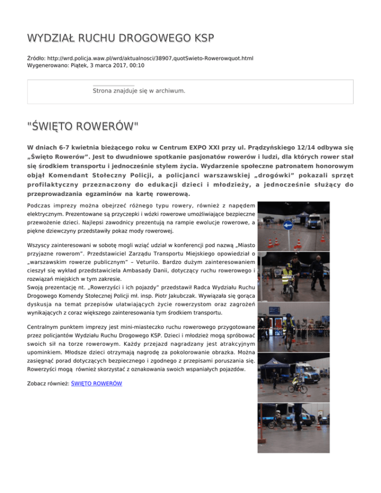 WYDZIAŁ RUCHU DROGOWEGO KSP "ŚWIĘTO ROWERÓW"