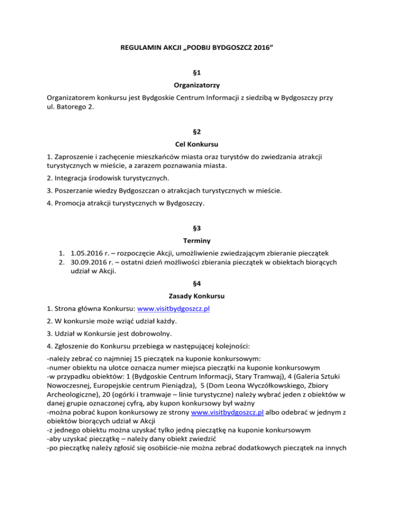 REGULAMIN AKCJI Podbij Bydgoszcz2016