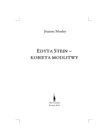 Joanne Mosley EDYTA S TEIN – KOBIETA MODLITWY Flos Carmeli Poznań 2012 Edith Stein: Woman of Prayer Originally published in English by Gracewing Publishing, Leominster, England © Joanne Mosley 2004 © FLOS CARMELI, 2012 Tłumaczenie Beata Moderska Redakcja Wojciech Ciak OCD Konsultacja naukowa Małgorzata Grzywacz Korekta Zofia Błajek Imprimatur Bp Marek Jędraszewski, Wikariusz Generalny Poznań, dn. 30.03.2012 r., N. 1678/2012 Nihil obstat O. prof. Paweł Placyd Ogórek OCD, Cenzor Poznań, dn. 29.03.2012 r. Imprimi potest Roman Jan Hernoga OCD, Prowincjał Warszawa, dn. 12.04.2012 r., L. dz. 80/P/2012 Wydawca FLOS CARMELI Sp. z o.o. ul. Działowa 25, 61-747 Poznań; tel.: 61 856 08 34; faks 61 856 09 47 e-mail: [email protected] www.floscarmeli.pl Druk i oprawa ESUS – Poznań ISBN 978-83-62536-52-8 SPIS TREŚCI PROLOG 7 CZĘŚĆ I WZORCE W ŻYCIU EDYTY ROZDZIAŁ PIERWSZY POSZUKIWANIE PRAWDY 13 ROZDZIAŁ DRUGI PRAWDA KRZYŻA 27 ROZDZIAŁ TRZECI BŁOGOSŁAWIONA PRZEZ KRZYŻ 43 ROZDZIAŁ CZWARTY NAJWYŻSZA OFIARA 55 CZĘŚĆ II NAUCZYCIELE MODLITWY ROZDZIAŁ PIĄTY JEZUS: EMPATIA W MODLITWIE. „INNY” Ukształtowana na podobieństwo Chrystusa Eucharystia Empatia z Jezusem w Eucharystii Ewangelie Empatia z Jezusem w Ewangeliach Cicha modlitwa Współczucie z Jezusem w modlitwie 75 76 78 79 81 83 86 88 ROZDZIAŁ SZÓSTY MARYJA: NASZ WZÓR I MATKA Wzór kobiecości Wzór żony i matki Wzór dla kobiety pracującej zawodowo Wzór kobiety konsekrowanej Macierzyństwo łaski, a nie natury 5 93 95 98 100 103 104 Wzór Kościoła Matka Kościoła, Matka nas wszystkich 106 108 ROZDZIAŁ SIÓDMY KRÓLOWA ESTERA: WSTAWIENNICTWO I NARÓD ŻYDOWSKI Historia Estery Wzrastająca świadomość Nowa Estera Wstawiennictwo jako kroczenie i stanie Wstawiennictwo jako modlitwa serca Kwestia żydowska Naród żydowski a Mesjasz Naród żydowski i Kościół Naród żydowski a zbawienie Świętych obcowanie 113 114 115 117 120 122 123 125 126 127 128 ROZDZIAŁ ÓSMY ŚWIĘCI KARMELU – ŚWIĘTOŚĆ DLA WSZYSTKICH Eliasz: „nasz święty ojciec” Św.Teresa: „nasza święta matka” Św. Jan od Krzyża: „nasz drugi ojciec i brat” Mała św. Teresa: „nasza droga siostra” Powszechna rodzina karmelitańska 131 132 141 151 158 165 EPILOG SŁOWA EDYTY Droga modlitwy Modlitwa i Kościół Czas na modlitwę Odpoczynek i bezpieczeństwo Za dnia i we śnie 169 169 170 170 171 171 WYKAZ SKRÓTÓW Prace Edyty Stein: Pozostałe skróty 173 173 174 DZIEŁA O EDYCIE STEIN 176 6 PROLOG Był niedzielny poranek, tuż przed dziesiątą. Właśnie rozpoczęłam swój pierwszy wykład o Edycie Stein. Spojrzałam na pełne oczekiwania twarze i powiedziałam: „Właśnie dzisiaj odbywa się kanonizacja Edyty Stein”. Był 11 października 1998 roku. Na placu Świętego Piotra w Rzymie zgromadziły się tłumy. Ale tutaj, w dalekim, cichym zakątku Oxfordshire, nowa święta wciąż była mało znana. Chciałam, aby ją poznano. Ale od czego zacząć? Tak wiele jest powodów jej wielkości, że wymienianie ich grozi sprowadzeniem wszystkiego do recytowania długiej listy określeń: Żydówka i doktor filozofii, konwertytka i pisarka, wykładowca i feministka, karmelitanka i ofiara Auschwitz. Nawet po jej śmierci lista ta nadal się wydłużała: święta i męczennica, współpatronka Europy i doktor Kościoła. Sądzę jednak, że istnieje jedno określenie, które obejmuje wszystkie pozostałe i oddaje najgłębszą istotę Edyty Stein: kobieta modlitwy. Gdziekolwiek się w życiu znalazła, emanowała głębią. W domu, w klasie, podczas spotkań z przyjaciółmi czy prowadząc wykłady. Pragnęła wstąpić do Karmelu zaraz po swym nawróceniu, ale musiało jeszcze upłynąć dwanaście lat, nim marzenie to się spełniło. Podczas tych lat Edyta pogłębiła swe rozumienie więzi pomiędzy modlitwą a życiem w świecie. Dzieliła się tą wiedzą z innymi. W 1928 roku, kiedy już od sześciu lat była katoliczką, tak pisała do [siostry Kaliksty Kopf,] jednej ze swych przyjaciółek: Bezpośrednio przed – i jeszcze długo po moim nawróceniu myślałam, że prowadzić życie religijne oznacza porzucić wszystko, co 7 PROLOG ziemskie, i żyć tylko myślami o rzeczach Bożych. Stopniowo jednak zrozumiałam, że na tym świecie żąda się od nas czegoś innego; nawet wiodąc życie kontemplacyjne, nie wolno zrywać kontaktu ze światem. Sądzę nawet, że im głębiej ktoś zanurzył się w Bogu, tym więcej, w tym samym duchu, musi „wyjść z siebie”, tj. wchodzić w świat, by mu nieść życie Boże1. Edyta miała światu coś szczególnego do zaoferowania. Nie znaczy to, że była świadoma wpływu, jaki wywierała. Mówi się czasem, że cnota jest jak perfumy: wszyscy wokół czują ich zapach, oprócz tego, kto pachnie! Jej spokój, tak udzielający się innym, nie oznaczał, że nie dostrzegała swych ludzkich potrzeb: „Kobiece dusze są tak pełne zamieszania”. Mylilibyśmy się, sądząc, że jej modlitwa była nieustannym trwaniem na wyżynach kontemplacji i płomiennego wstawiennictwa. Była jej podstawową techniką przetrwania w codziennym kieracie: zaczynała o świcie, a kończyła tuż przed północą. Budziła się rano w poczuciu paniki. Jak podołać temu wszystkiemu? Mówiła wtedy sobie: „Spokojnie! Teraz nic nie może zakłócić mi spokoju, gdyż pierwsza godzina poranna należy do Pana”. Myślę, że to właśnie stanowi klucz do jej wszystkich modlitw: całkowite zanurzenie w Bogu, które umożliwia dystans do zmartwień, wspomnień, a nawet bezpośredniego otoczenia. W tym samym liście z 1928 roku udziela następującej porady: Trzeba dojść do tego, że w końcu osiągnie się jakiś cichy kącik, w którym można będzie przebywać z Bogiem tak, jakby poza tym nic w ogóle nie istniało. I tak codziennie2. Efekty jej modlitw były zadziwiające. Zawsze, gdy czuję palącą potrzebę jakiegoś wzoru do naśladowania, wracam ponownie do relacji z pobytu Edyty