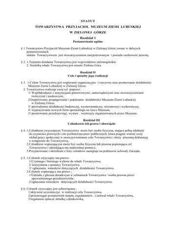 Statut Towarzystwa Przyjaciół Muzeum Ziemi Lubuskiej w Zielonej