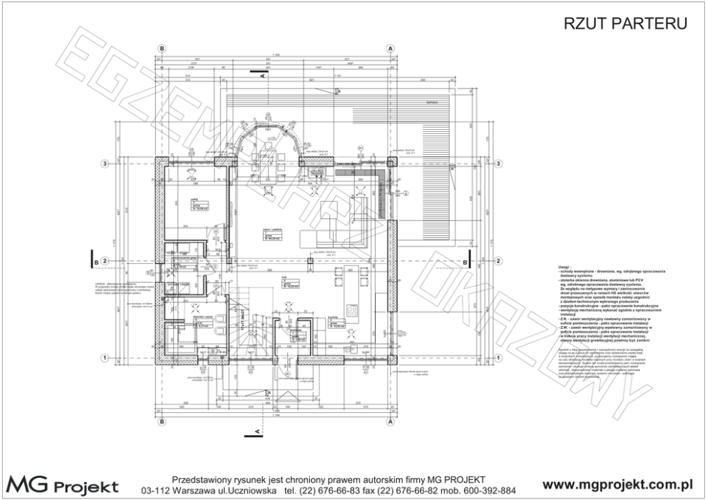 RZUT PARTERU B A 1 164 341 3735 2185 65 341 341 341 90 417 4495 1445 313 313 325 260 A 325 45 1 131 821 250 30 30 2x15 30 30 tarrace 0 170 764 1415 260 260 208 20 260 240 85 4425 355 pokój 2 gress A: 10,58 m2 Z.N. 25 45 260 25 12 4675 322 Z.N. 5125 45 20 1485 155 Z.W. 4675 3 400 58 12 db1 220 298 grzejnik kana owy np. PK firmy Vasco 1485 Z.N. 20 d=20 25 45 12x29 20 2x15 30 28 hp.90 up elbet. 25x25 cm poz. S-1 45 25 155 25 25 45 db1 up elbet. 25x25 cm poz. S-1 r=160 760 240 195 220 150 20 hp.0 o6 168 170 325 95 o6 3 up elbet. 25x25 cm poz. S-1 .0 r=170 hp.0 o5 hp .0 260 240 0 95 240 24 24 95 95 hp o6 325 95 240 hp.0 o6 300 10 12 o6 5 salon i jadalnia 7 gress A: 44,34 m2 30 80 205 90 895 Uwagi : - schody wewn trzne - drewniane, wg. odr bnego opracowania dostawcy systemu - stolarka okienna drewniana, aluminiowa lub PCV wg. odrebnego opracowania dostawcy systemu. Ze wzgl du na nietypowe wymiary i zastosowanie drzwi przesuwnych w ramach HS wielko otworów monta owych oraz sposób monta u nale y uzgodni z dzia em technicznym wybranego producenta - pozycje konstrukcyjne - patrz opracowanie konstrukcyjne - wentylacj mechaniczn wykona zgodnie z opracowaniem instalacji - Z.N. - zawór wentylacyjny nawiewny zamontowany w suficie pomieszczenia - patrz opracowanie instalacji - Z.W. - zawór wentylacyjny wywiewny zamontowany w suficie pomieszczenia - patrz opracowanie instalacji - w trakcie pracy instalacji wentylacji mechanicznej, otwory wentylacji grawitacyjnej powinny by zamkni 25 20 12 10 360 150 210 240 o7 4675 20 45 325 45 25 1 pod nadpro em filarek wymurowa z ceg y pe nej o1 Zgodnie z ide poszanowania i oszcz dno ci energii ze szczególn uwag na jej zu ycie do ogrzewania oraz wytwarzania ciep ej wody w budynkach mieszkalnych, proponujemy rozwi zania maj ce na celu likwidacj mostków cieplnych przy monta u okien w cianach dwuwarstwowych. System ten zosta przedstawiony jako rozwi zanie zamienne i skutkuje zmian wymiarów zamówieniowych stolarki okiennej , dopasowaniem materia u z jakiego zostanie wykonana oraz indywidualnym doborem systemu mocowa - patrz opis za wykazem stolarki budowlanej. 30 2x15 30 pod nadpro em filarek wymurowa z ceg y pe nej 434 30 494 100 210 dw 120 50 240 o2 150 45 25 hp.90 30 295 255 60 12 12 hp.0 o3 pion kanalizac. d=100mm w bru dzie 15x15 cm 170 100 210 20 210 Z.W. 1 gress A: 2,86 m2 45 25 45 12 13 90 60 d1wiatro ap hp.90 20 210 12 90 205+35 88 60 15 100 50 kuchnia 3 gress A: 15,93 m2 80 205 95 298 160 72 210 150 160 90 180 78 20 18 17x17,94x27 4425 109 95 32 570 Z.W. 210 5 azienka i sauna 6 gress A: 8,37 m2 20 325 910 holl 4 gress A: 12,25 m2 17 2 360 180 12 90 hp.0 210 375 22 1 099 1 164 325 B 100 222 210 45 325 A A 1 25 d3 281 20 366 Z.W. 95 45 25 B 80 205 595 12 15 up elbet. 25x25 cm poz. S-1 25 203 12 3975 4675 pion kanalizac. d=100mm w bru dzie 15x15 cm 755 25 80 205 3 pompa ciep a UWAGA - alternatywne rozwi zanie. W przypadku innego ród a ciep a ni pompa ciep a nale y zastosowa komin spalinowy z wentylacj Komin mo na ustawi na stropie parteru. up elbet. 25x25 cm poz. S-1 1745 298 5 98 440 90 90 250 hp.120 90 o4 1 000 Z.W. 90 120 90 12 d3 1005 705 12 1 170 B 2 3 188 pomieszczenie gosp. 5 gress A: 4,70 m2 1 170 90 d2 440 1 000 203 Przedstawiony rysunek jest chroniony prawem autorskim firmy MG PROJEKT 03-112 Warszawa ul.Uczniowska tel. (22) 676-66-83 fax (22) 676-66-82 mob. 600-392-884 www.mgprojekt.com.pl RZUT PI TRA A A B 1 164 1 099 325 65 149 220 340 205 325 45 260 450 170 142 152 Z.W. 210 316 95 sypialnia 9 gress A: 14,21 m2 100 db2 hp.0 20 210 400 190 25 pod nadpro em filarek wymurowa z ceg y pe nej 1*=1,75% o9 210 140 45 25 210 360 up elbet. 25x25 cm poz. S-1 pion kanalizac. d=100mm w bru dzie 15x15 cm 325 1 000 2 Uwagi : - schody wewn trzne - drewniane, wg. odr bnego opracowania dostawcy systemu - stolarka okienna drewniana, aluminiowa lub PCV wg. odrebnego opracowania dostawcy systemu. Ze wzgl du na nietypowe wymiary i zastosowanie drzwi przesuwnych w ramach HS wielko otworów monta owych oraz sposób monta u nale y uzgodni z dzia em technicznym wybranego producenta - pozycje konstrukcyjne - patrz opracowanie konstrukcyjne - wentylacj mechaniczn wykona zgodnie z opracowaniem instalacji - Z.N. - zawór wentylacyjny nawiewny zamontowany w suficie pomieszczenia - patrz opracowanie instalacji - Z.W. - zawór wentylacyjny wywiewny zamontowany w suficie pomieszczenia - patrz opracowanie instalacji - w trakcie pracy instalacji wentylacji mechanicznej, otwory wentylacji grawitacyjnej powinny by zamkni 20 Z.N. hp.85 210 225 180 140 325 20 RS 100 o10 120 1 pod nadpro em filarek wymurowa z ceg y pe nej o8 Zgodnie z ide poszanowania i oszcz dno ci energii ze szczególn uwag na jej zu ycie do ogrzewania oraz wytwarzania ciep ej wody w budynkach mieszkalnych, proponujemy rozwi zania maj ce na celu likwidacj mostków cieplnych przy monta u okien w cianach dwuwarstwowych. System ten zosta przedstawiony jako rozwi zanie zamienne i skutkuje zmian wymiarów zamówieniowych stolarki okiennej , dopasowaniem materia u z jakiego zostanie wykonana oraz indywidualnym doborem systemu mocowa - patrz opis za wykazem stolarki budowlanej. balcony R 120 -1,5 % 75 325 180 434 100 210 405 22 325 1 099 1 164 B 100 222 210 45 325 A A 1 22 25 45 hp.85 210 12 12 15 45 88 60 15 352 45 25 180 12 12 13 210 140 298 100 225 20 45 25 30 45 4675 5185 248 4675 80 205 20 12 216 281 B 5 440 90 2895 95 17x17,94x27 80 12 205 90 azienka 12 gress A: 10,27 m2 3795 25 5 schody/klapa na strych 60x120 cm 115 17 210 196 holl 13 gress A: 12,05 m2 8 90 d2 325 90 95 5 120 20 12 o13 80 13 hp.85 196 up elbet. 25x25 cm poz. S-1 12 12 90 d2 1695 25 141 12 12 835 15 4675 Z.W. 90 140 3795 80 80 205 8 90 17 20 260 20 12 63 13 d3 183 25 45 2585 4195 8 up elbet. 25x25 cm poz. S-1 pion kanalizac. d=100mm w bru dzie 15x15 cm sypialnia 8 gress A: 17,78 m2 635 12 90 260 360 80 12 205 5 80 12 205 12 63 1 000 12 50 sypialnia 11 gress A: 17,24 m2 d2 183 50 12 1145 90 12 10 12 17 93 260 220 379 90 5185 66 4555 sypialnia 10 gress