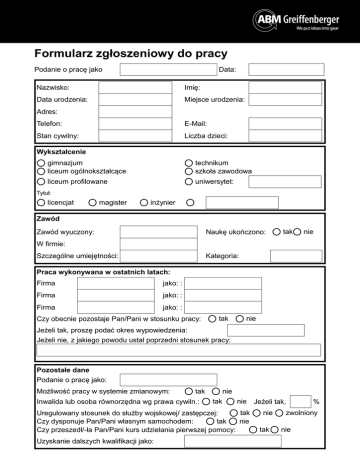 Formularz zgłoszeniowy do pracy