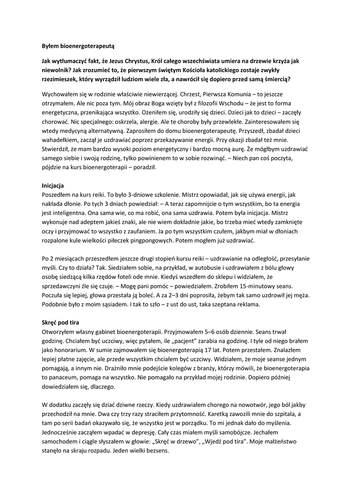 Byłem bioenergoterapeutą Jak wytłumaczyd fakt, że Jezus Chrystus