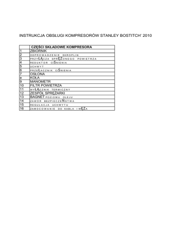 INSTRUKCJA OBSŁUGI KOMPRESORÓW STANLEY BOSTITCH’ 2010