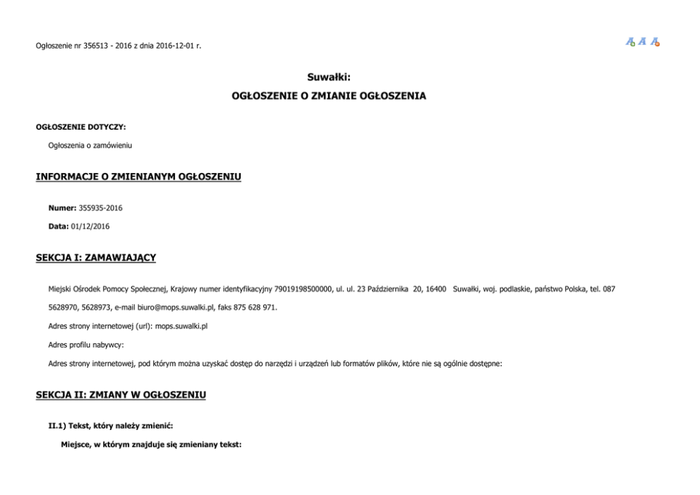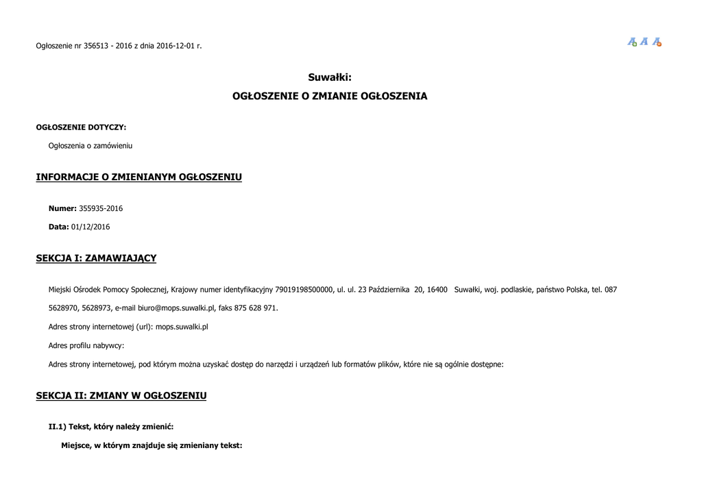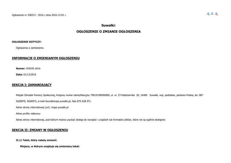 Ogłoszenie o zmianie Ogłoszenie (plik pdf, 164 kb)