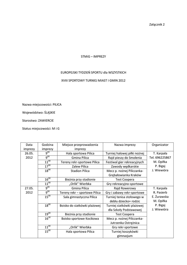 Załącznik 2 STMiG – IMPREZY EUROPEJSKI TYDZIEŃ