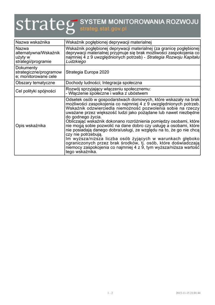 Nazwa wskaźnika Wskaźnik pogłębionej deprywacji materialnej