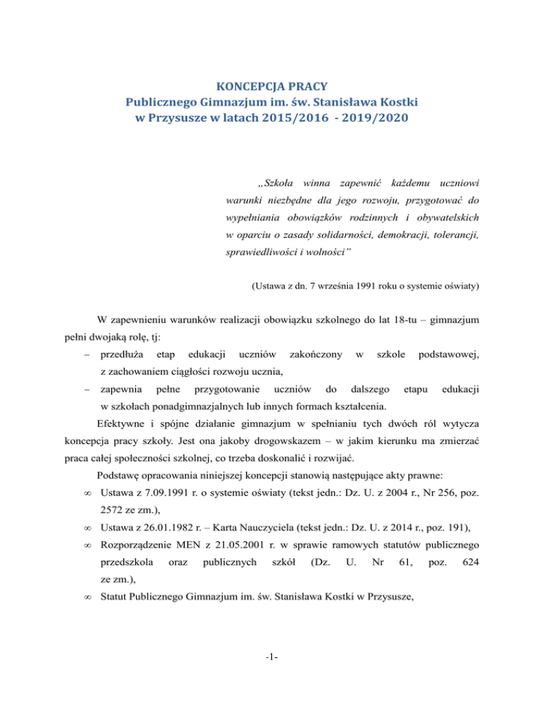 koncepcja pracy - Publiczne Gimnazjum w Przysusze