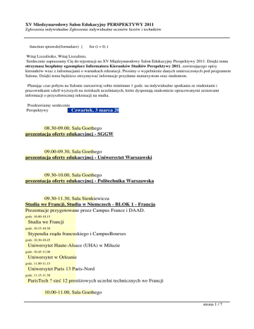 informacyjny. Osoby nie zarejestrowane będą wpuszczane na sale wykładowe W MIARĘ WOLNYCH MIEJSC. Podczas całego Salonu czynne są