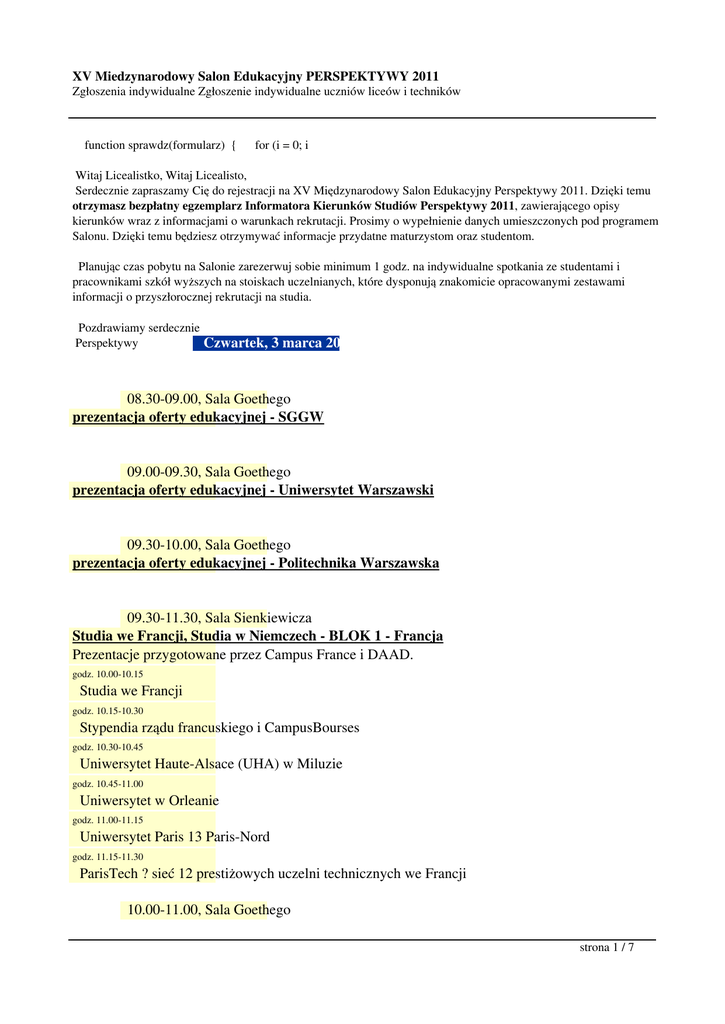 Serdecznie zapraszamy Cię do rejestracji na XV Międzynarodowy Salon Edukacyjny Perspektywy 2011. Dzięki temu