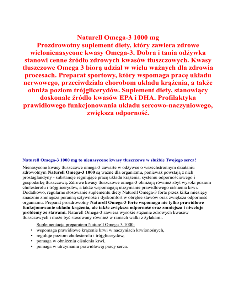 Naturell Omega-3 1000 mg Prozdrowotny suplement diety, który
