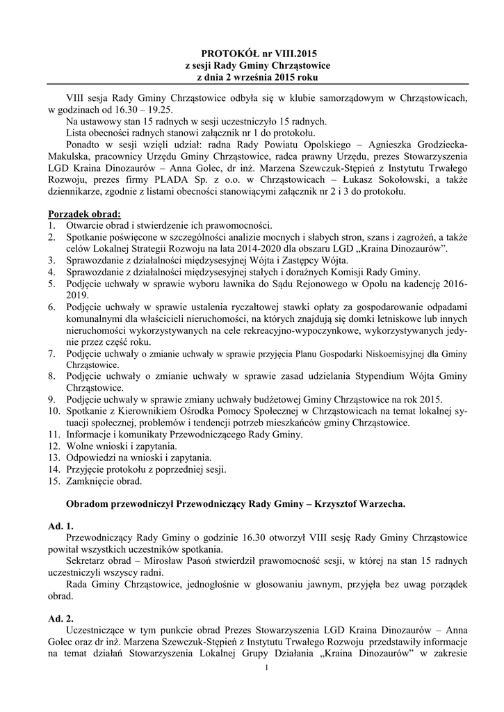 Protokół nr VIII.2015 - Urząd Gminy Chrząstowice