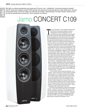 HI-FI Zespoły głośnikowe 8000-10 000 zł TEST Nie tylko na skutek pojawienia się nowej serii Concert, ale i „abdykacji” znacznie droższych modeli serii R, testowany właśnie model C109 okazuje się zajmować pozycję flagowca całej oferty Jamo. Trochę niespodziewanie, nawet do takiej roli świetnie się nadaje, demonstrując nie tylko bardzo dobrą technikę, ale też przebojowe wzornictwo. Dużo punktów na starcie! Jamo CONCERT C109 T o ważne wydarzenie – Jamo wymieniło jesienią całą serię Concert, dla potrzeb audiofilów na pewno najważniejszą w ofercie duńskiej firmy. Już się zawahałem, bo przecież pamiętałem, że na szczycie znajdowały się niedawno high-endowe dipole R907 i R909, którym tym bardziej nie można odmówić prawa do zaspokajania audiofilskich potrzeb, ale przy okazji weryfikowania, jak wygląda aktualny katalog Jamo, okazało się, że R-ki zniknęły... Szkoda, ale w takiej sytuacji tym bardziej cieszy nowa seria Concert, która wskazuje, że Jamo zupełnie nie odpuszcza. Trochę dziwi (ale ani trochę nie martwi), że w ofercie prezentowanej na stronie wciąż pozostają modele poprzedniej serii Concert, podczas gdy wszystko inne – konstrukcje i ceny – wskazuje na to, że nowe modele są ich jednoznacznymi, bezpośrednimi następcami. C109 ma bardzo wiele wspólnego z C809 (test w „Audio” 5/2012), nawet nie kosztuje znacznie więcej, czego można by się spodziewać przy okazji takiej wymiany. Wymiany potrzebnej, bowiem poprzednia seria liczy sobie już prawie 8 lat. Pewnie pozostaje w sprzedaży aż do wyczerpania zapasów, ale chyba musi zostać przeceniona, jeżeli ma mieć szanse przy nowej linii – wyglądającej świetnie. Ale jest druga medalu, związana z brzmieniem, którą zaznaczę już tutaj. Chociaż technika C109 jest bardzo podobna do C809, to modele te wyraźnie różnią się brzmieniem, i nie jest to różnica stawiająca którąkolwiek z nich w roli bezwzględnego zwycięzcy. Komu bardzo przypadną do gustu C809, może nie polubić C109, i na odwrót. Co do brzmienia zdania mogą być podzielone, co do wyglądu – jestem przekonany, że nikt nie będzie wzdychał do poprzednich, co w pewnych sytuacjach tym bardziej może utrudnić decyzję... Były przyzwoite, ale nic ponadto, za to C109 są wybitne. Mają w tym teście godną i zróżnicowaną konkurencję, czai się ona zwłaszcza ze strony włoskiej, ale Jamo wspięło się na wyżyny. Takie sukcesy nie są przypadkowe. Projekt wzorniczy dla całej nowej serii Concert przygotował Kieron Dunk, ponoć światowej sławy designer, co na mnie naprawdę nie robi wrażenia – robi je sam wygląd C109 i innych nowych Concertów. Nowa seria Concert składa się z dwóch esencjonalnych podserii – tańszej C9 i droższej C10. W pierwszej znajdują się dwie konstrukcje wolnostojące, dwie podstawkowe, jeden centralny i jeden surroundowy, w droższej – tylko jeden wolnostojący (właśnie C109), jeden podstawkowy (C103), centralny (C10 CEN) i surroundowy (C10 SUR). Wszystkie mają obudowy w kształcie, jaki widzimy w C109. 48 luty 2015 www.audio.com.pl Dwa otwory bas-refleks wyprowadzono z tyłu; również ze względu na sposób strojenia bas-refleksu polecane jest odsunięcie ich od ściany na co najmniej pół metra, ale przy właściwym ustawieniu kolumn bas może być fantastyczny. Boczne ścianki są odważnie wygięte – ale co to za odwaga wyginać boczne ścianki? Znamy to od dawna... Jednak od lat wyginane są w płaszczyźnie poziomej, co jest mniej efektowne, bo niemal niewidoczne z przodu – ścianka przednia pozostaje prostokątna. Wygięcie w płaszczyźnie pionowej robi większe wrażenie, którego opisywać chyba nie trzeba, wystarczy spojrzeć na zdjęcie. Korzystne dla ostatecznego rezultatu jest też zaokrąglenie krawędzi poziomych – płynne przejścia ze ścianek bocznych w dolną i górną, bez żadnych śladów ich łączenia. Ale w sumie krzywizn wcale nie ma tutaj wiele, to przykład prawdziwego kunsztu wzorniczego, gdzie kilkoma „ruchami” i właściwymi proporcjami uzyskuje się doskonały efekt. Jednocześnie tak wyrazisty i oryginalny projekt pozostaje uniwersalny, trudno mu zarzucić, że nie pasuje do jakiegokolwiek wnętrza – nawet w tych stylowych będzie wyglądał elegancko, chociaż autonomicznie. Od strony akustyczno-mechanicznej wygięte ścianki są zawsze chociaż trochę lepsze od ścianek prostych, pozwalając zwiększyć sztywność i redukować fale stojące, chociaż ten drugi aspekt jest często przeceniany. Nie przypisywałbym więc zastosowanej tutaj architekturze jakichś cudownych właściwości, ale też, na szczęście, słynny designer niczego nie popsuł, nie narzucił formy, która kłóciłaby się z treścią – swój cel osiągnął bez szkody dla brzmienia. Do tych kształtów świetnie pasuje też proste połączenie coraz modniejszej bieli i klasycznej czerni na froncie. Dostępne są też dwie inne wersje – w całości czar- www.audio.com.pl na i oklejona fornirem orzechowym – ale zawsze z czarnym frontem, lakierowanym na czarny satynowy. W wersjach białej i czarnej pozostałe ścianki są błyszczące - wyglądają na lakierowane, ale być może zastosowano (sprytnie i dokładnie) błyszczącą folię – na dolnej ściance (normalnie niewidocznej) znajduje się „szew” wyglądający jak zejście się krawędzi okleiny, tamże słusznie ukryte. Nie mam jednak pomysłu (nie jestem technologiem...), jak dopieszczono krawędzie tylnej ścianki, która też jest biała – nie widać na nich żadnego łączenia. Może więc rzeczywiście lakierowanie... Ale wtedy trochę zaskakujący pozostaje fakt, że wersje lakierowane na wysoki połysk są tańsze od wersji pokrytej fornirem. Do tej pory było odwrotnie. Tak czy inaczej, obecność zarówno wersji błyszczących, jak fornirowanej, trzeba docenić w kontekście poprzedniej edycji Concertów – oklejanych w całości folią drewnop
