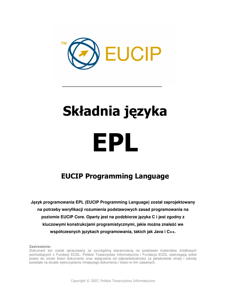 Język programowania EPL (EUCIP Programming Language) został zaprojektowany