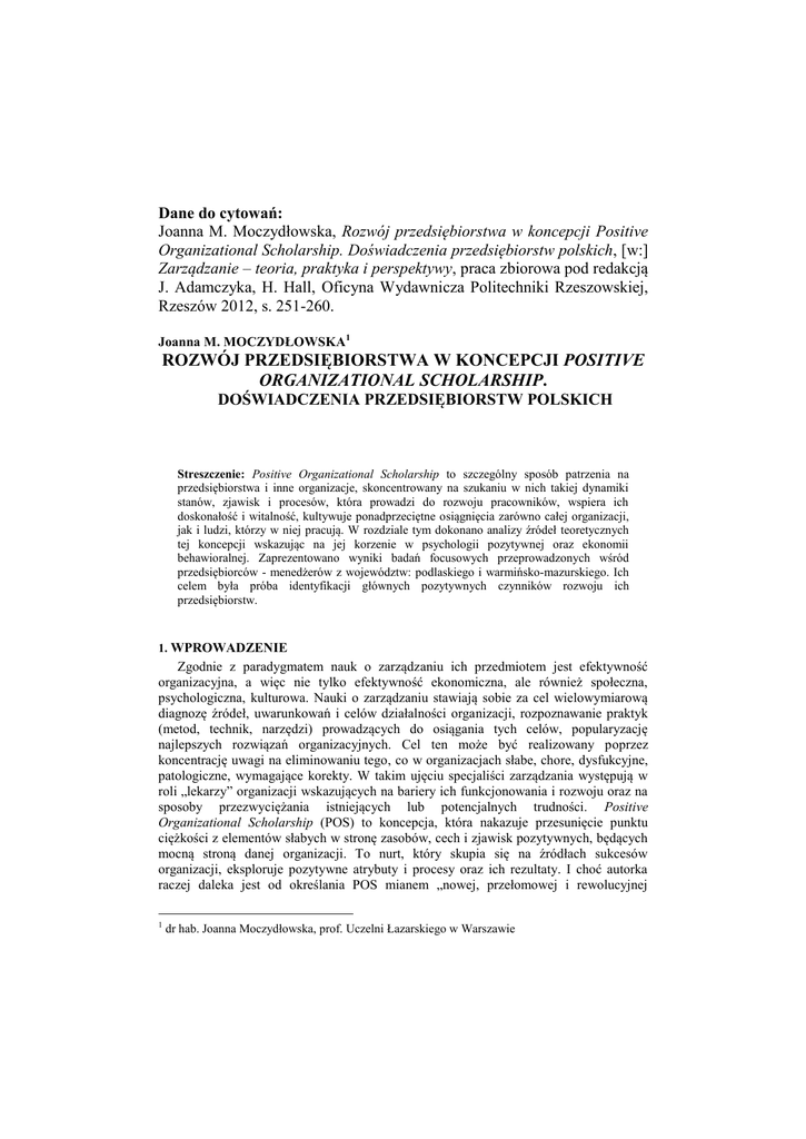 J.M. Moczydłowska, Rozwój przedsiębiorstwa w koncepcji Positive