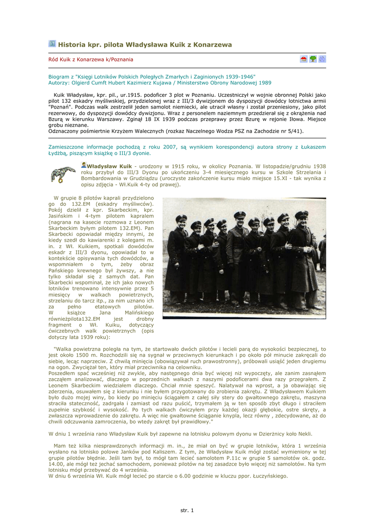 Historia kpr. pilota Władysława Kuik z Konarzewa